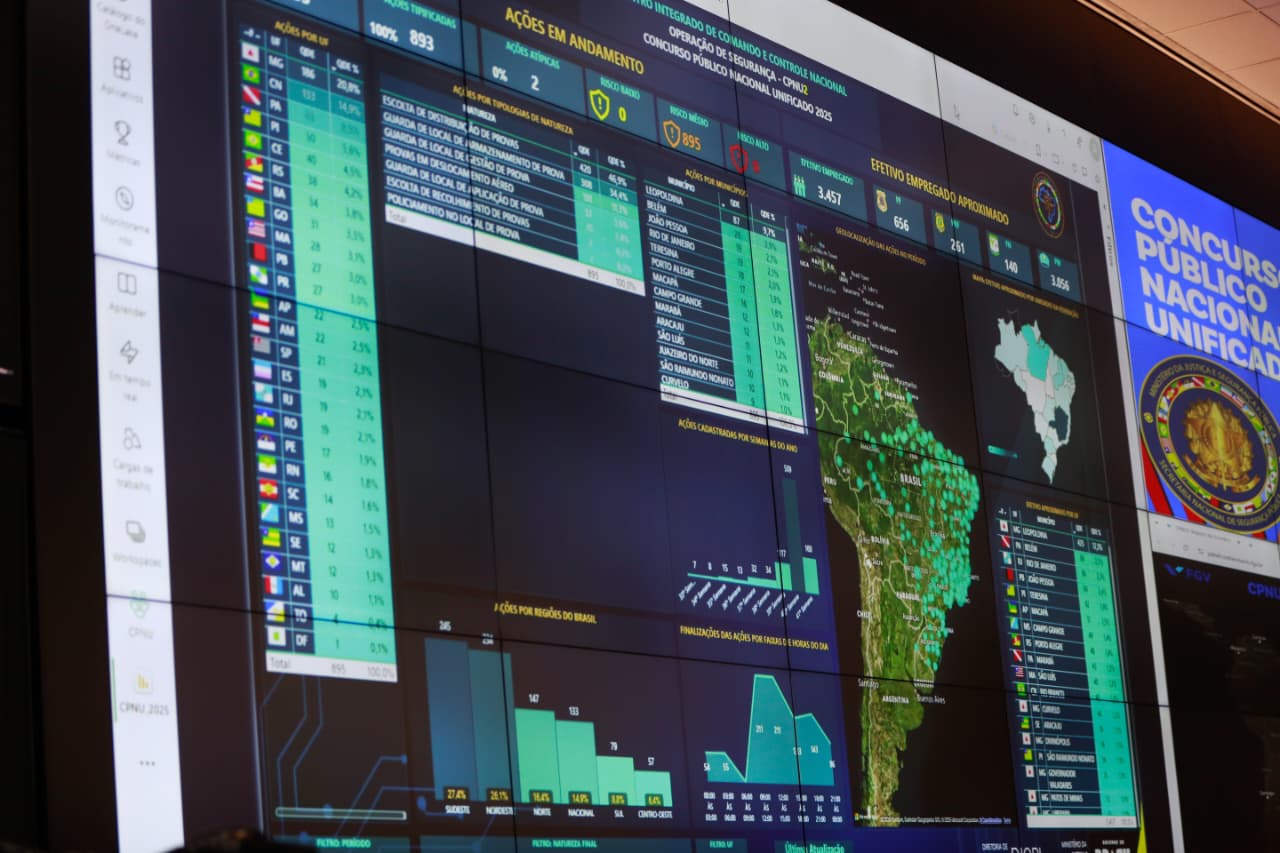 Uma sala de situação foi montada na sede da Polícia Rodoviária Federal (PRF), em Brasília, para acompanhar o CNU. A coordenação é do Ministério da Gestão e Inovação (MGI), que conta com representantes de todas as forças de segurança federais, e dois enviados de todos os estados.