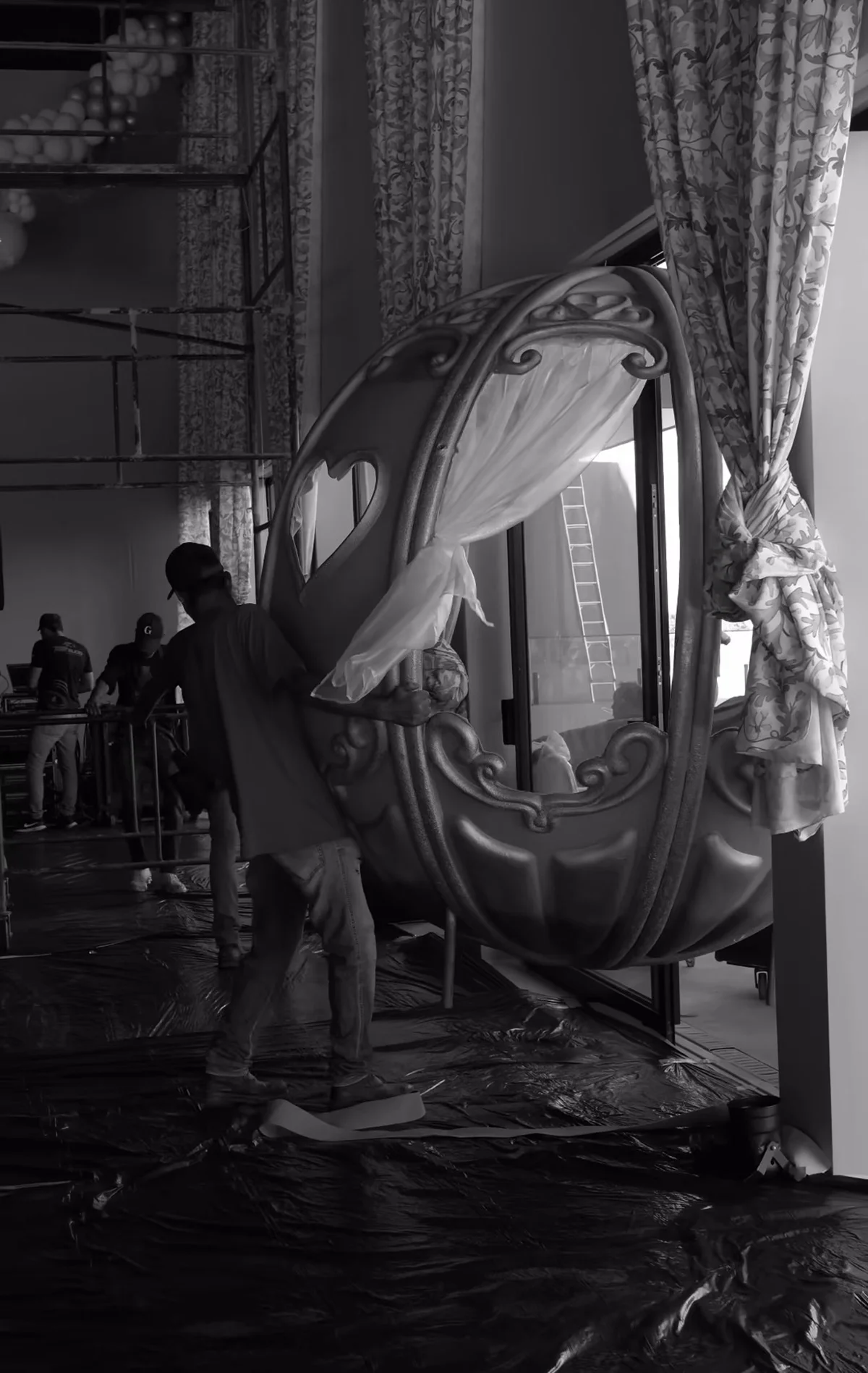 Bastidores da decoração da festa de aniversário de 3 anos de Maria Flor. Tema é Cinderela
