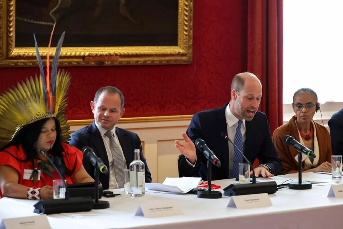 O príncipe William ao lado das ministras de Estado do Brasil, Sonia Guajajara e Marina Silva