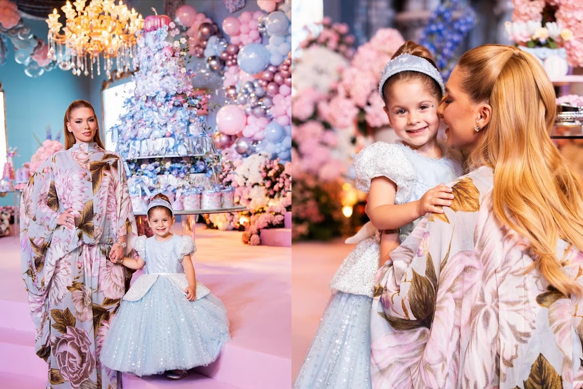 A pequena Maria Flor, filha da influenciadora Virginia Fonseca e do cantor Zé Felipe, comemorou o aniversário de 3 anos com uma festa da Cinderela nesta quinta-feira (23/10). O evento, realizado em Goiânia, teve decoração luxuosa e acessórios gigantes como bule, xícara e balões compondo a ambientação.