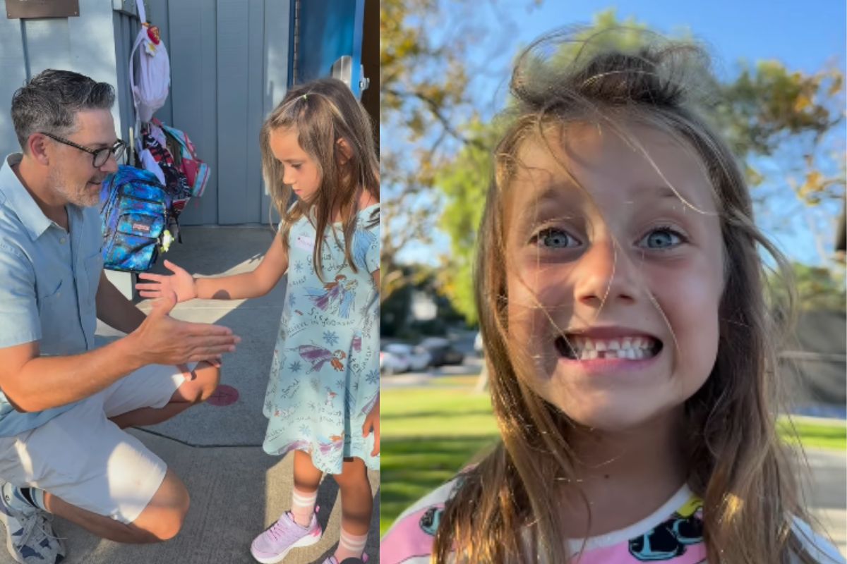 Na manhã seguinte, pai e filha estrearam seu novo ritual: um aperto de mão cheio de brincadeiras que acaba com um beijo no punho que em seguida é “guardado no bolso” para que eles tenham o beijo um do outro durante todo o dia.