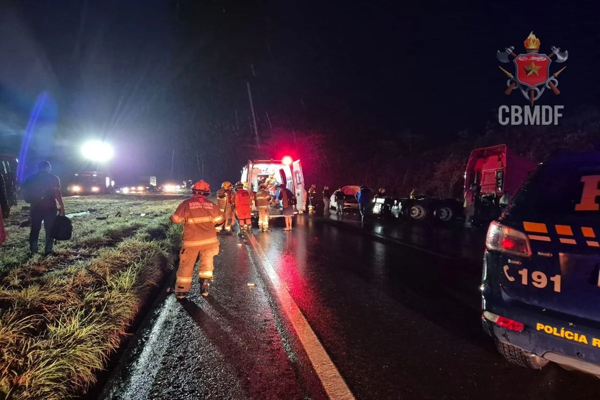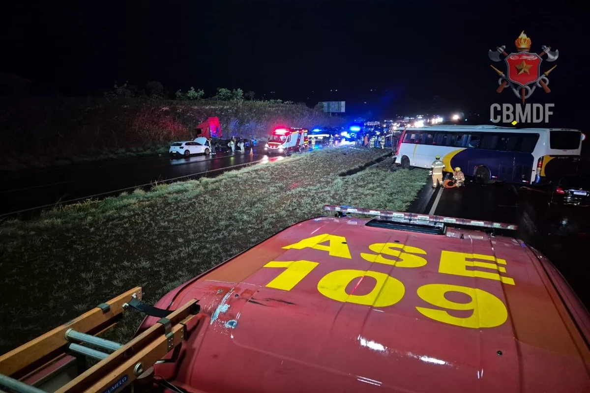 O Corpo de Bombeiros Militar do Distrito Federal (CBMDF) foi acionado e mobilizou sete viaturas para o atendimento da ocorrência, dada a gravidade da colisão.