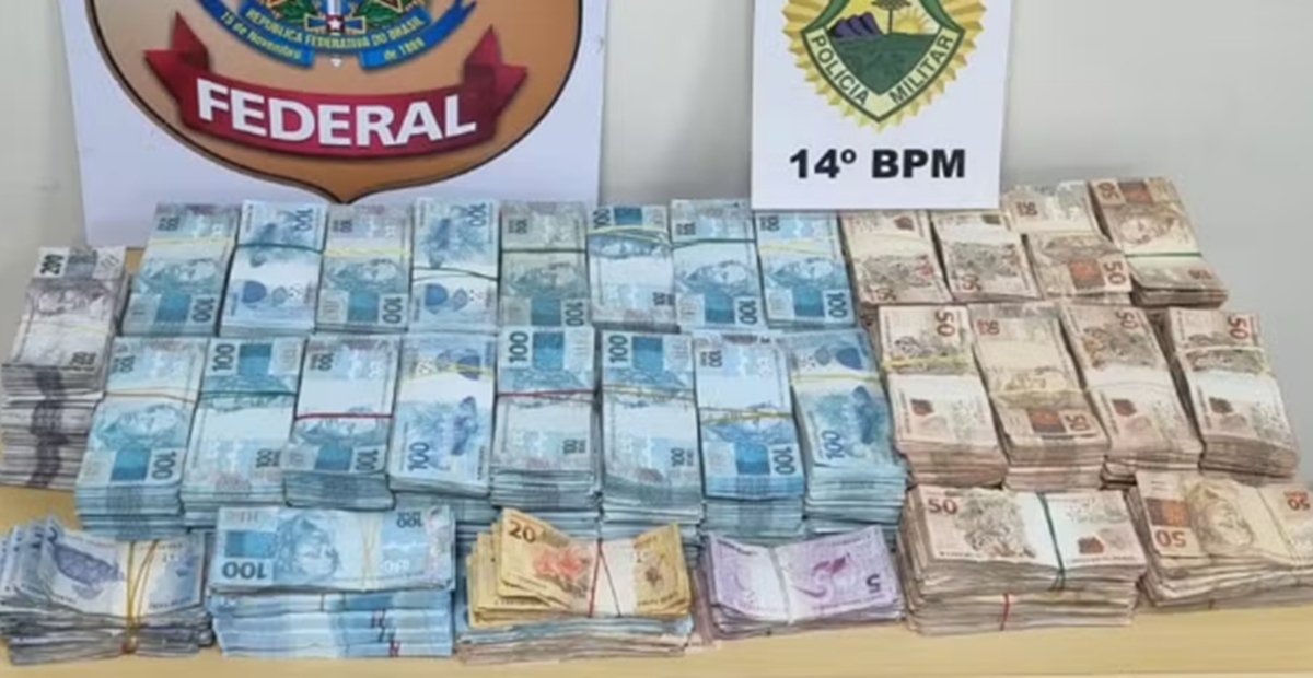 Com o apoio do Coordenador de Policiamento da Unidade (CPU), as equipes realizaram uma busca minuciosa e encontraram diversas sacolas com notas em reais, totalizando R$ 1.278.264,65.