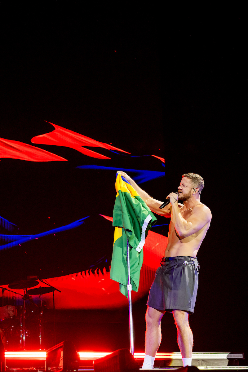Mais tarde, a atração norte-americana Imagine Dragons subiu ao palco emocionando os fãs com o hit Fire in These Hills e uma chuva de confetes. O vocalista, Dan Reynolds, fez questão de homenagear o país e apareceu segurando a bandeira verde e amarela. As canções Thunder, Bones, It’s Time e Take Me to the Beach deram prosseguimento ao show.