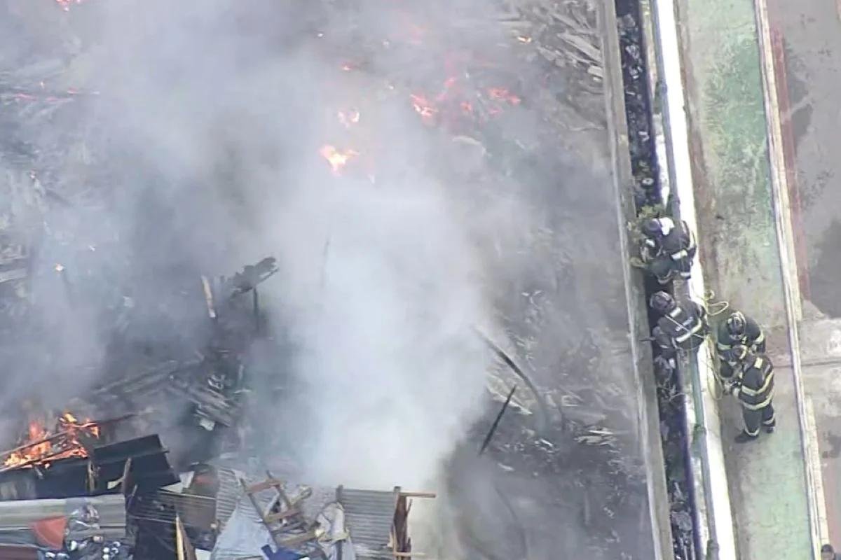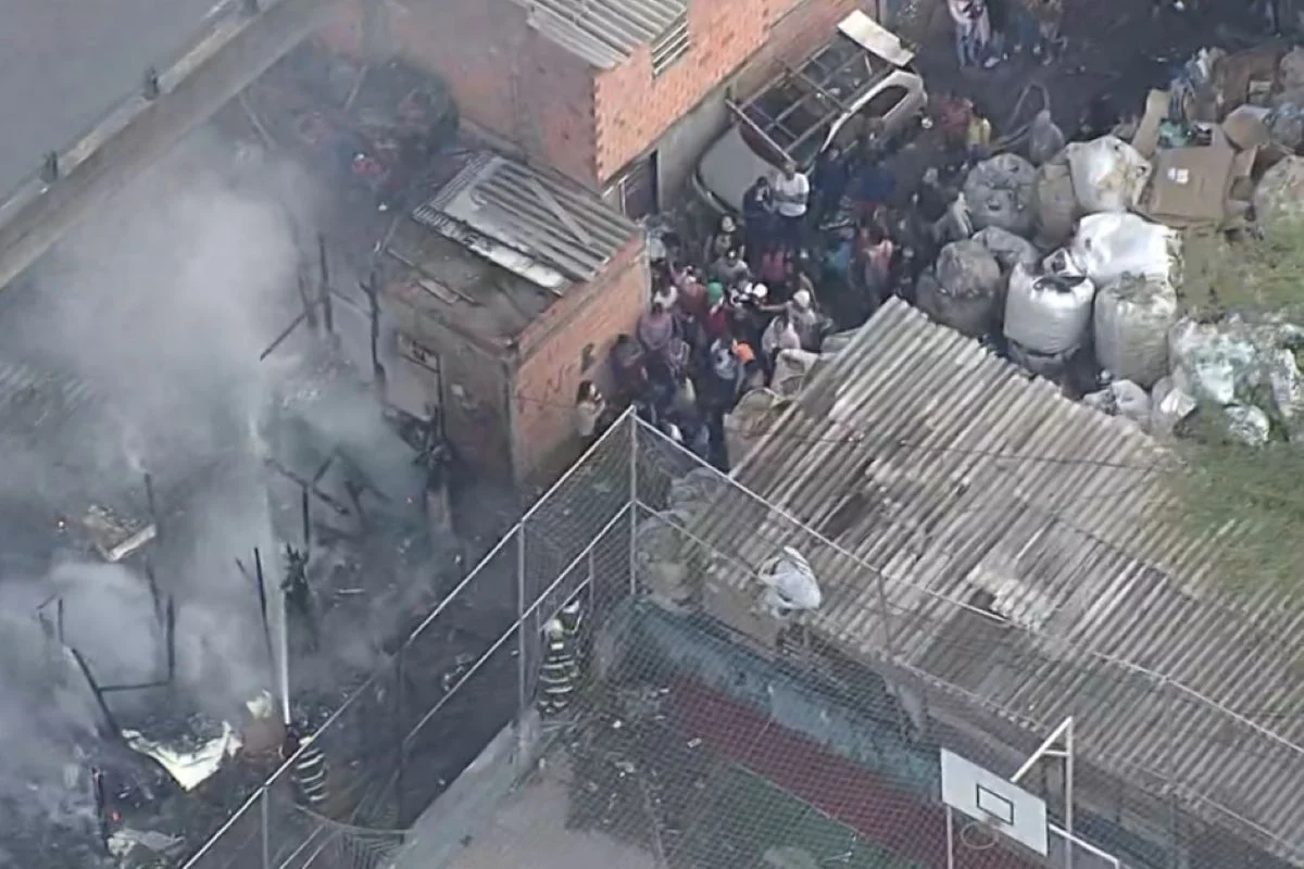 Moradores de comunidade na Penha se aglomeram ao lado de incêndio