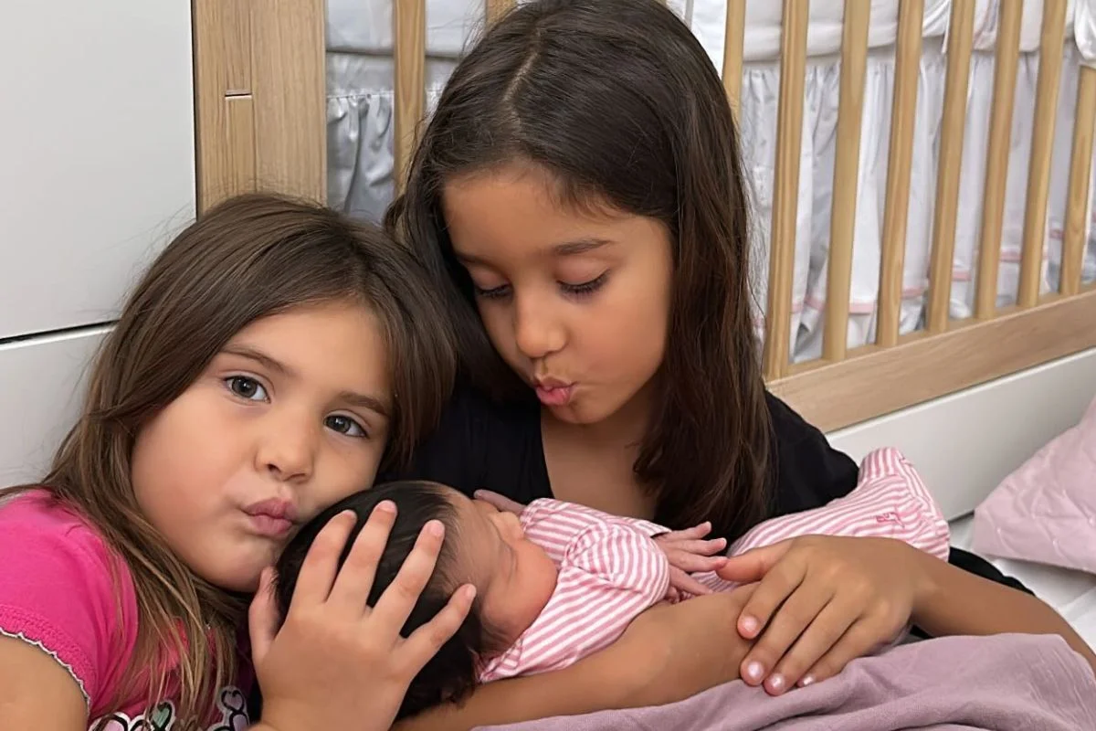 Após dar à luz, Letícia Almeida encanta web com fotos das três filhas