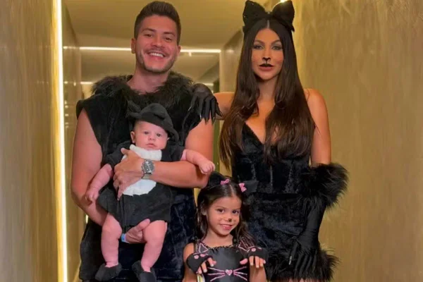 Arthur Aguiar com Jheny Santucci e os filhos, Sophia e Gabriel