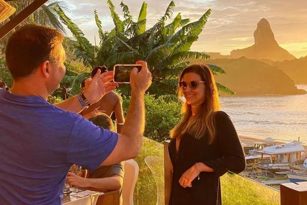 Flávio Bolsonaro e a mulher, Fernanda, em Fernando de Noronha