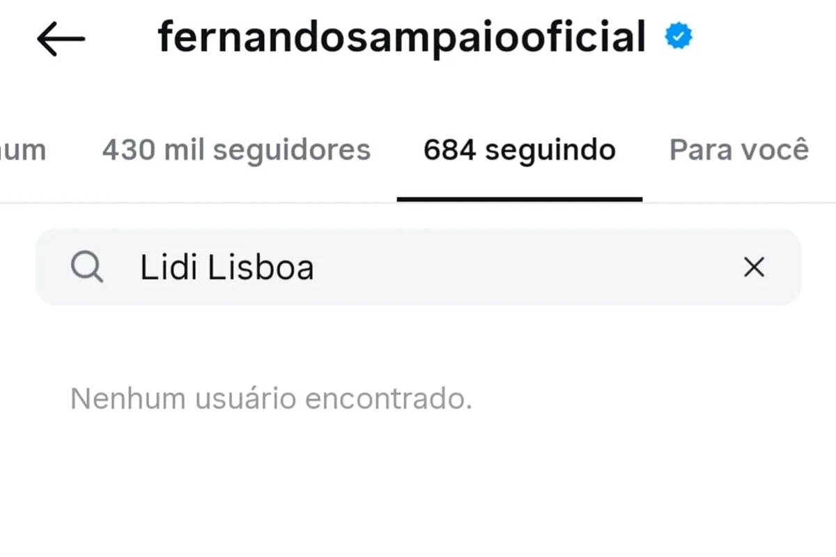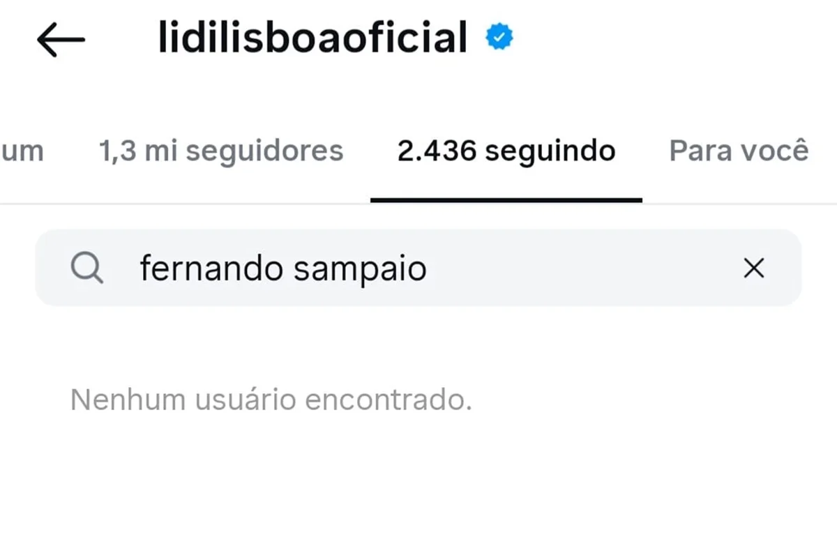 Lidi Lisboa e Fernando Sampaio trocaram unfollow nas redes sociais