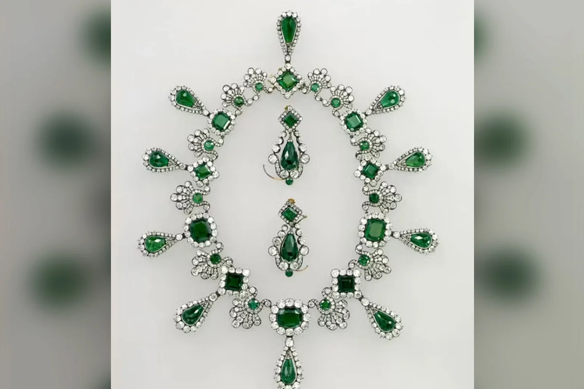 Colar e brincos da imperadora Maria Luisa, segunda esposa de Napoleão Bonaparte, com 32 esmeraldas e 1.138 diamantes