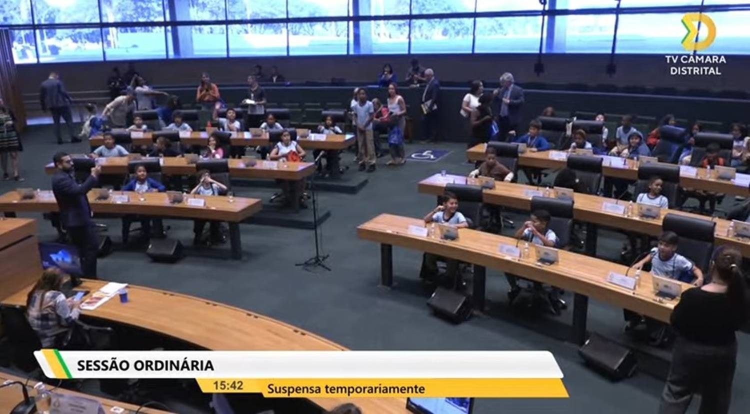 Após o fim da sessão, o deputado Chico Vigilante avaliou o dia: “Para mim foi uma das melhores sessões. Colocar as crianças para se posicionarem e acompanharem a aula que tiveram foi incrível”.