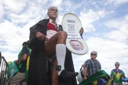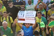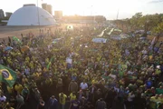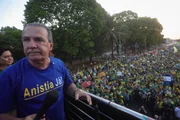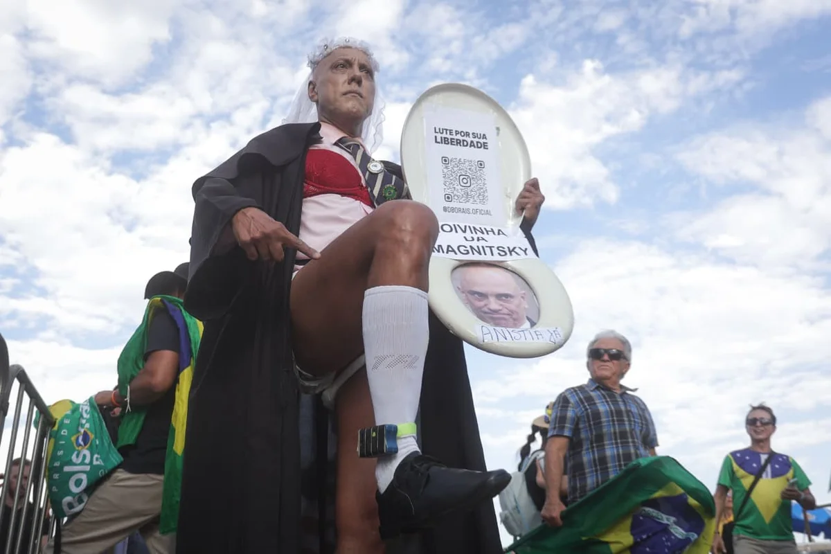 O grupo subiu em um trio elétrico para discursar aos manifestantes. Familiares de presos por envolvimento nos ataques às sedes dos Três Poderes também estão presentes.