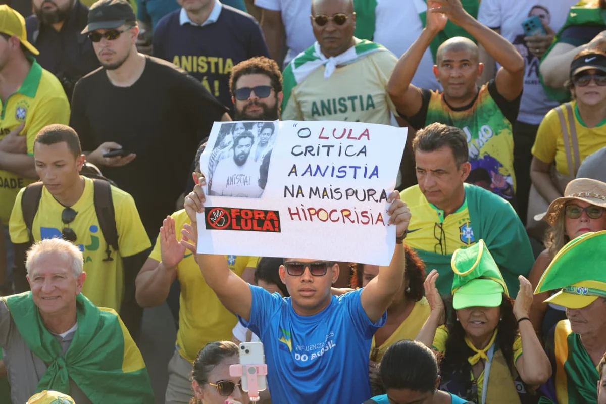 Em discurso aos apoiadores de Bolsonaro, Michelle reforçou o coro pelo andamento da anistia no Congresso. “É o grande líder do Brasil (Bolsonaro), é o grande líder da direita, foi o homem que governou, que não se corrompeu, não cometeu nenhum crime, não roubou os velhinhos, não tirou a menção dessas pessoas que são vulneráveis, qual foi o crime que ele cometeu?”, questionou.