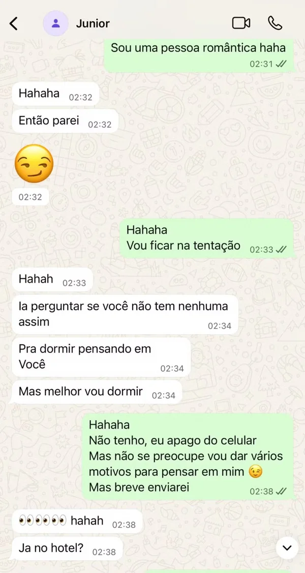 E concluiu: “Sempre falamos pelo WhatsApp — tenho o número pessoal dele. Divulguei poucas conversas porque não quis expor as partes mais íntimas”, encerrou, afirmando que eles combinaram de manter tudo fora dos holofotes: “Foi meu combinado ele”.