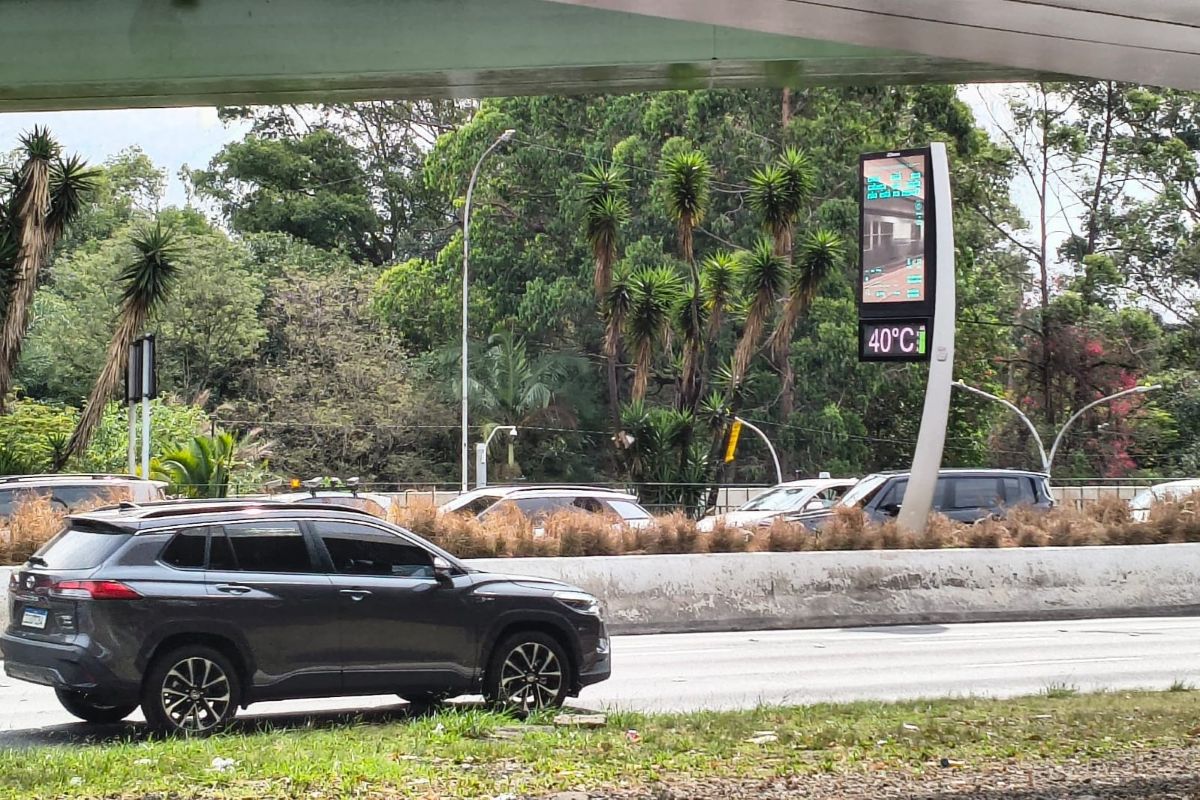Termômetro marca 40 graus na Avenida Rubem Berta, perto do Ibirapuera