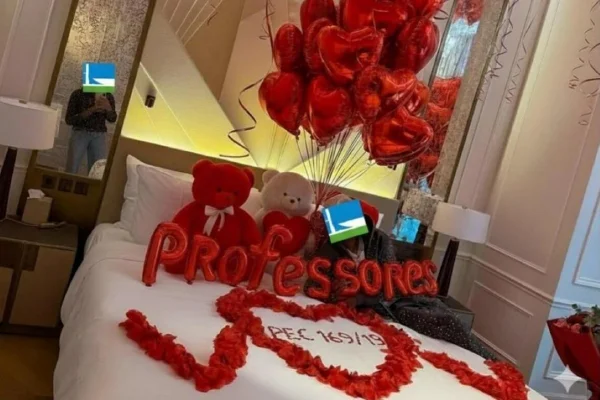 A postagem trazia um cenário romântico, com flores e balões vermelhos, e se tornou alvo de críticas. A comparação mais recorrente foi com um “quarto de motel”.