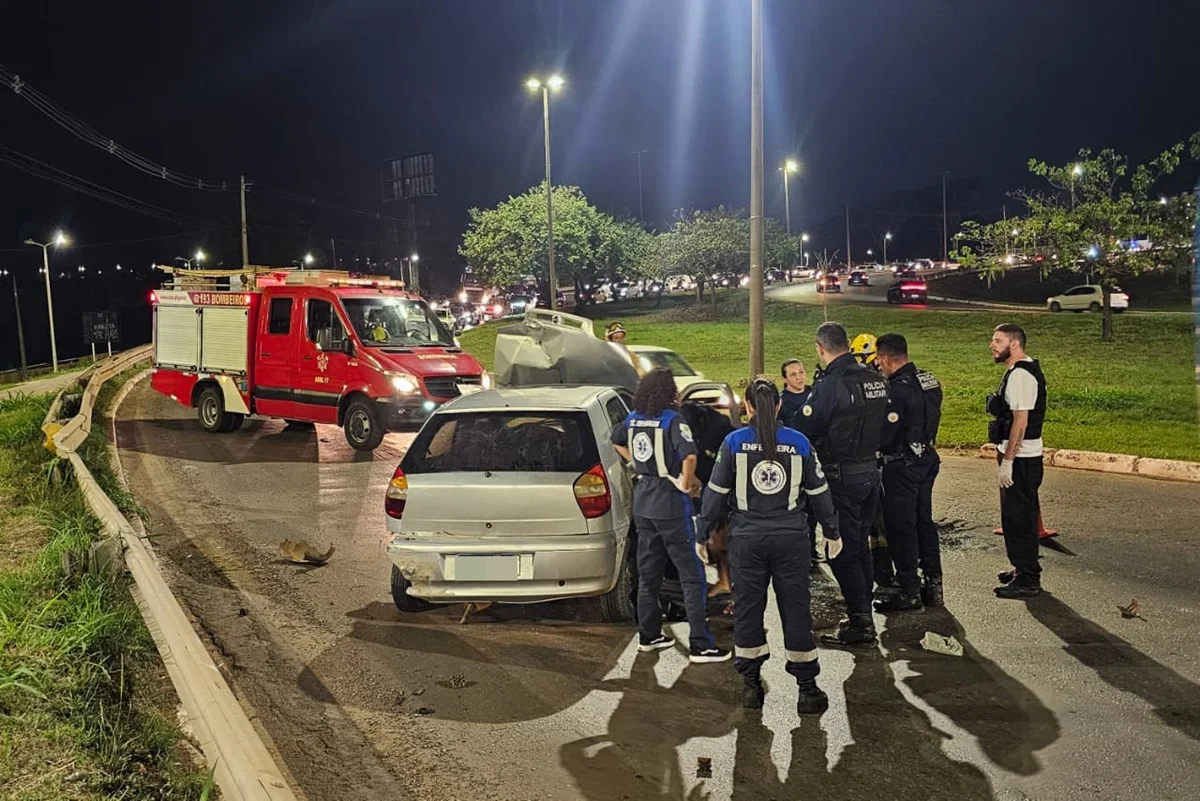 A reportagem do Metrópoles apurou que o próprio condutor causou o acidente, após perder o controle do veículo. Imagens feitas no local mostram que o veículo, um Fiat Palio prata ficou com a frente completamente destruída.