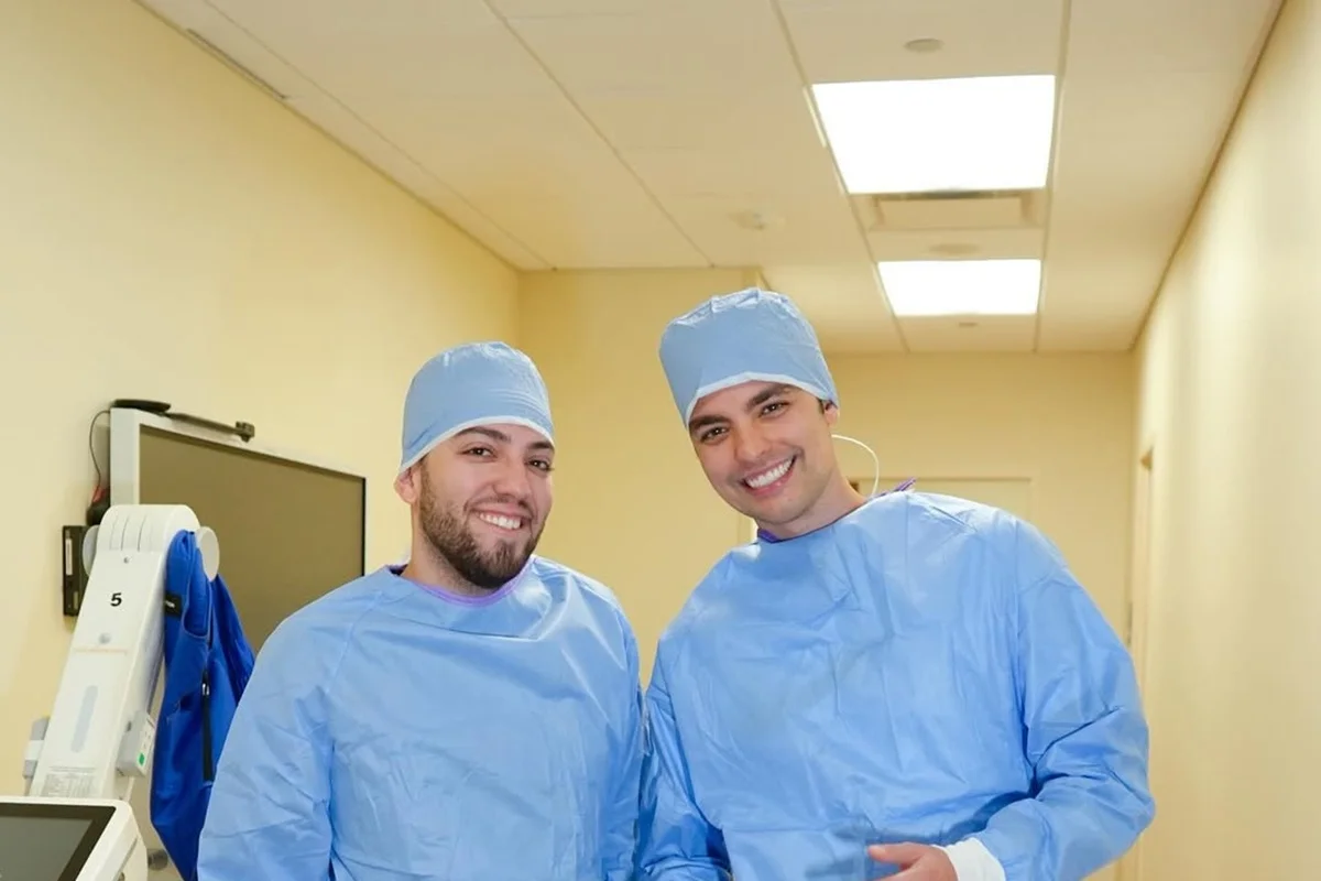 Os influenciadores Lucas Rangel e Lucas Bley durante o parto da filha, Mia