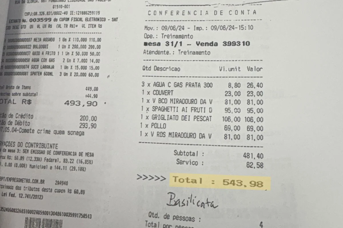Pagamento de almoço de R$ 543 em padaria do centro de São Paulo