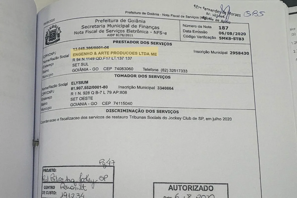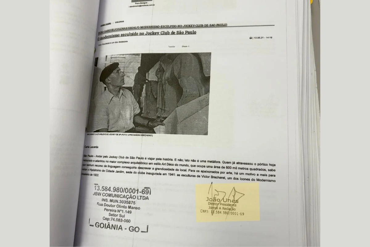 Segundo notas fiscais obtidas pelo Metrópoles, o jornal goiano teve contas de luz e seguro de sua sede em Goiânia no valor de R$ 1 milhão pagos com recursos captados por meio da lei federal de fomento à cultura. O endereço da publicação, rua 94, é o mesmo registrado na conta de luz quitada. A Redação, que tem Wolney Alfredo Arruda Unes como um dos sócios, foi subcontrado pela Elysium para fazer a divulgação do restauro do Jockey.
