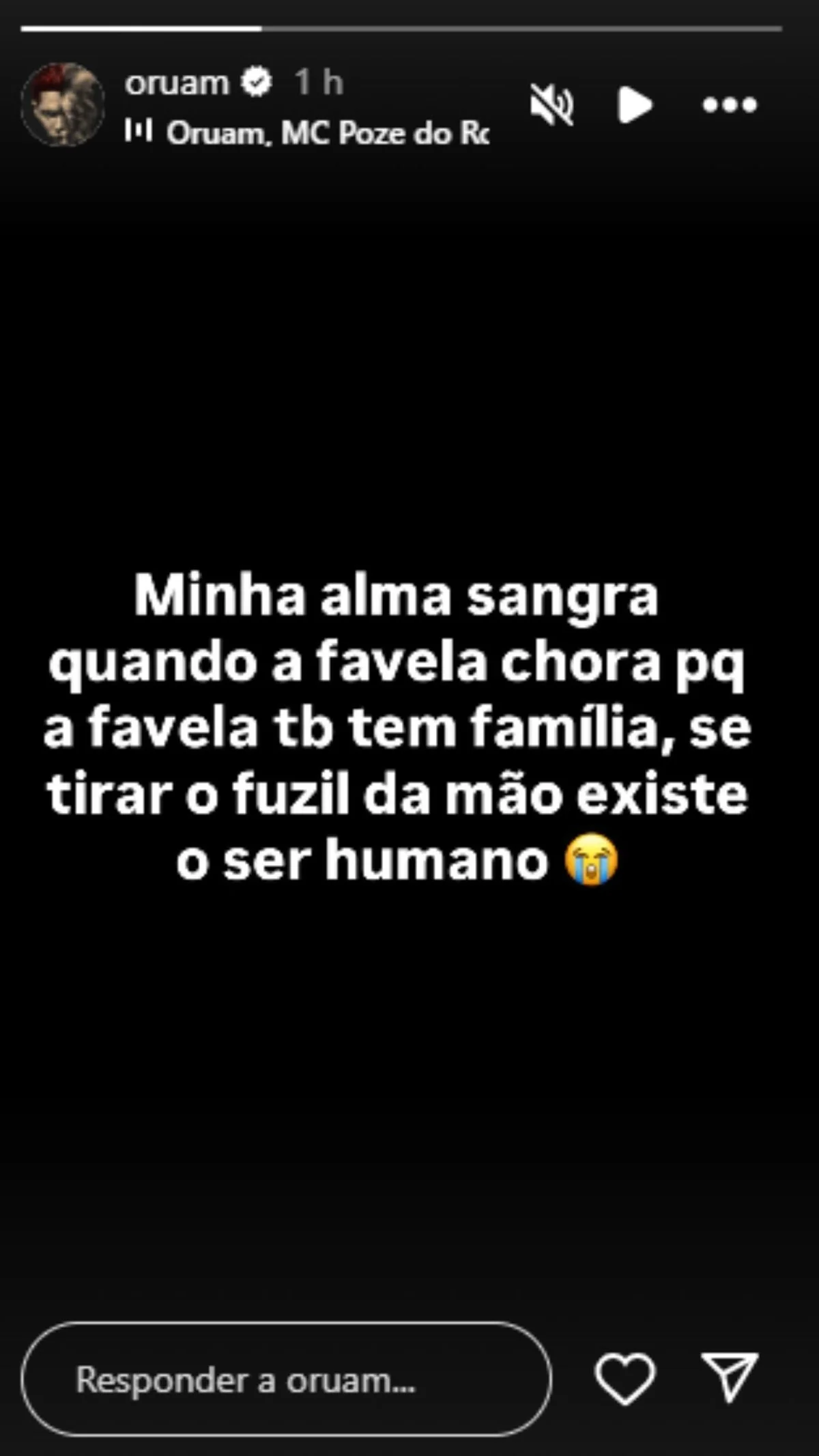 MC Poze faz apelo em mensagem compartilhada no Instagram em meio a megaoperação do Rio