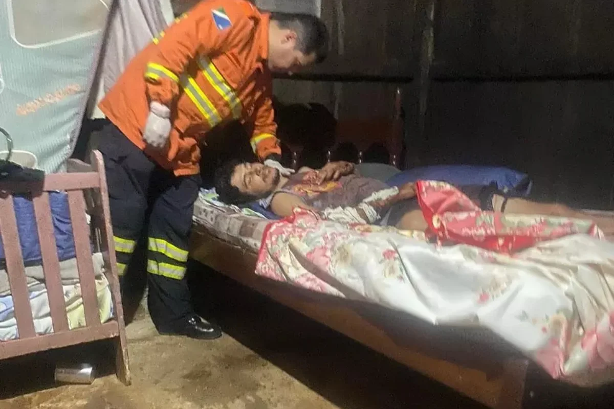 O trabalhador apresentava cortes profundos na cabeça e na perna esquerda, além de outros ferimentos pelo corpo. Apesar da gravidade, estava consciente e com sinais vitais estáveis.