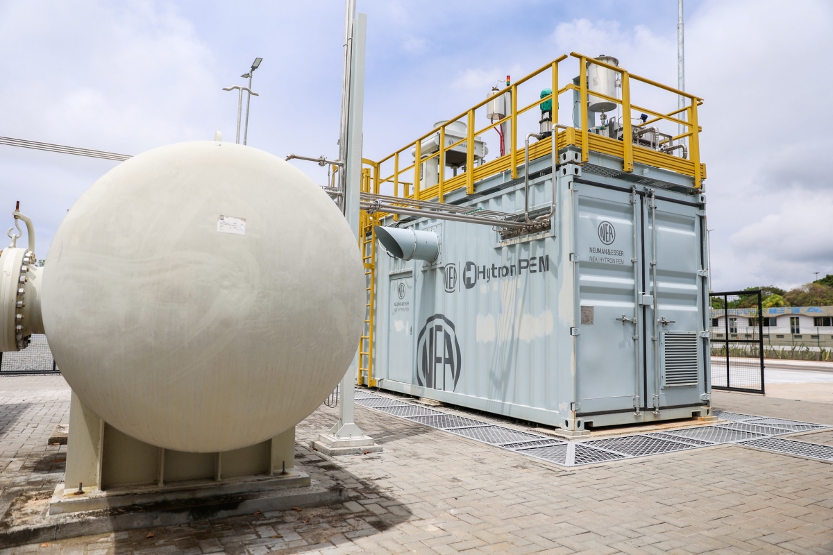 Para fazer esse monitoramento, uma unidade criada pela Neuman & Esser no porto produzirá 30 kg de células de hidrogênio por dia, o bastante para abastecer 4 veículos que rodem cerca de 100 km ao dia.