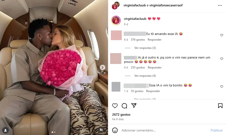 Virginia também não escapou das falsificações digitais. A influenciadora, que vive um affair com o jogador Vini Jr., tornou-se mais uma vítima de fotos criadas por inteligência artificial.
