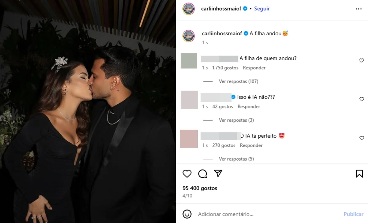 O perfil publicou uma foto feita com IA de Carlinhos Maia ao lado de uma mulher