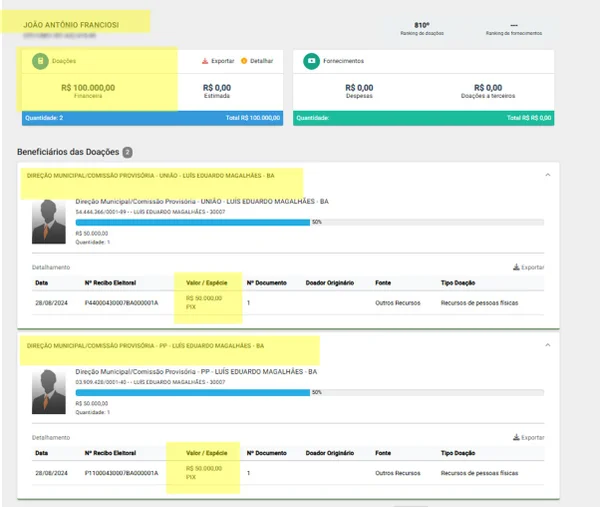 Em uma entrevista para um canal no Youtube sobre a história “de garra” da família dele, o cotonicultor fala que é natural do Rio Grande do Sul, e que se mudou para Luis Eduardo Magalhães em 1987. Influente na cidade, nas últimas eleições João Franciosi doou R$ 50 mil, respectivamente, para o Diretório Municipal do União Brasil e do Partido Progressistas (PP) da cidade de Luis Eduardo Magalhães. Os dois depósitos foram feitos por PIX, segundo dados da Justiça Eleitoral.