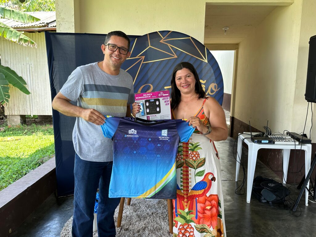 Durante o evento, realizado com a presença de autoridades locais e representantes da saúde municipal, foram entregues novos fardamentos e materiais de trabalho, incluindo balanças e fitas métricas, fundamentais para a rotina de atendimentos domiciliares e monitoramento da saúde da população.