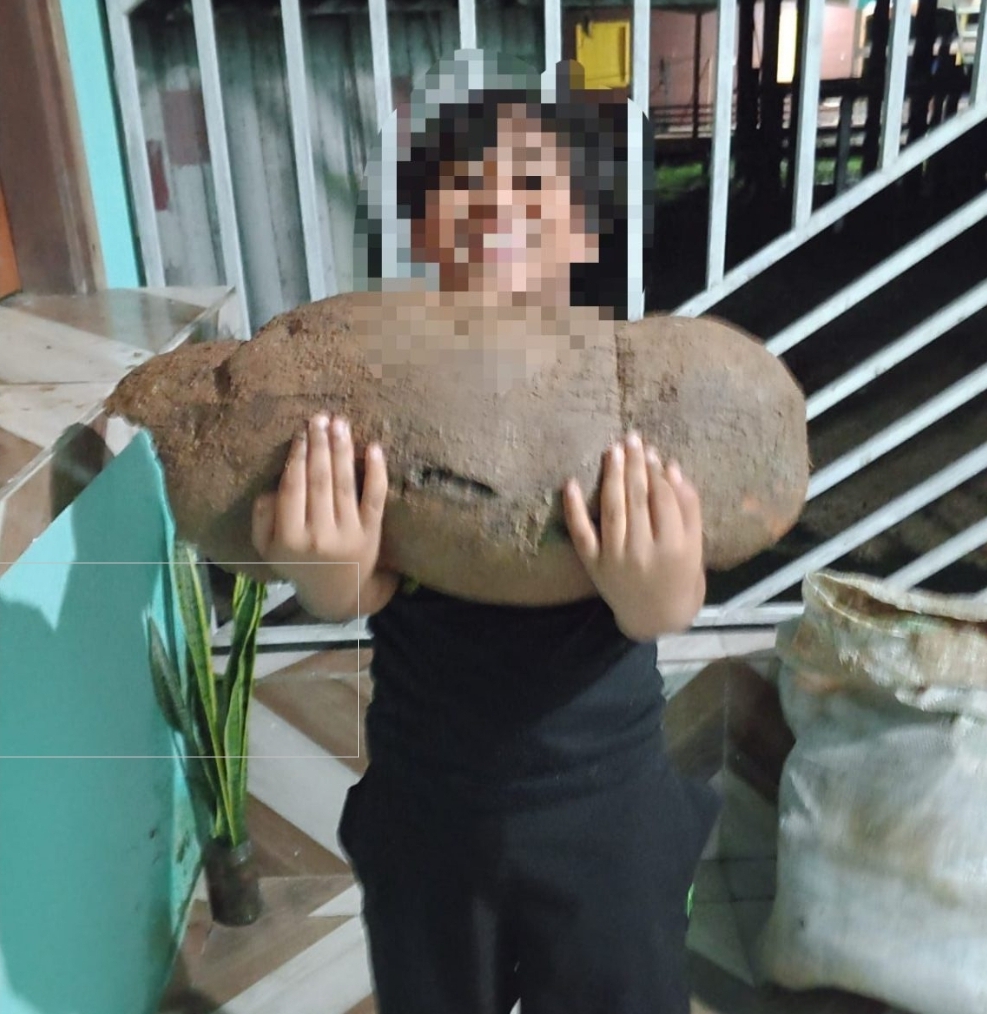 Uma imagem enviada à redação do jornal Extra do Acre mostra um garoto segurando uma macaxeira que, segundo informações, foi colhida por um agricultor na zona rural de Tarauacá, mais precisamente na comunidade do Gregório.