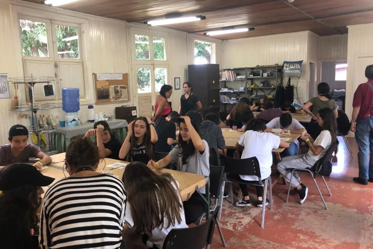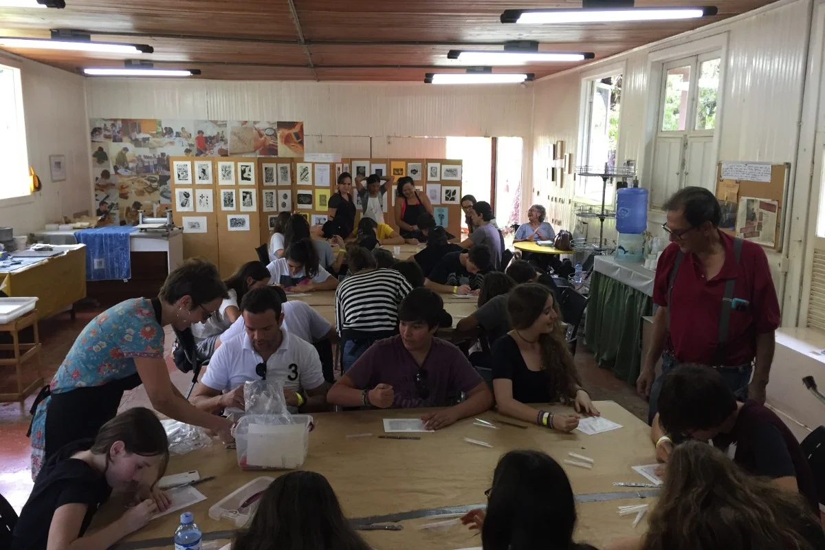 Alunos e professores na oficina Gravura em Foco