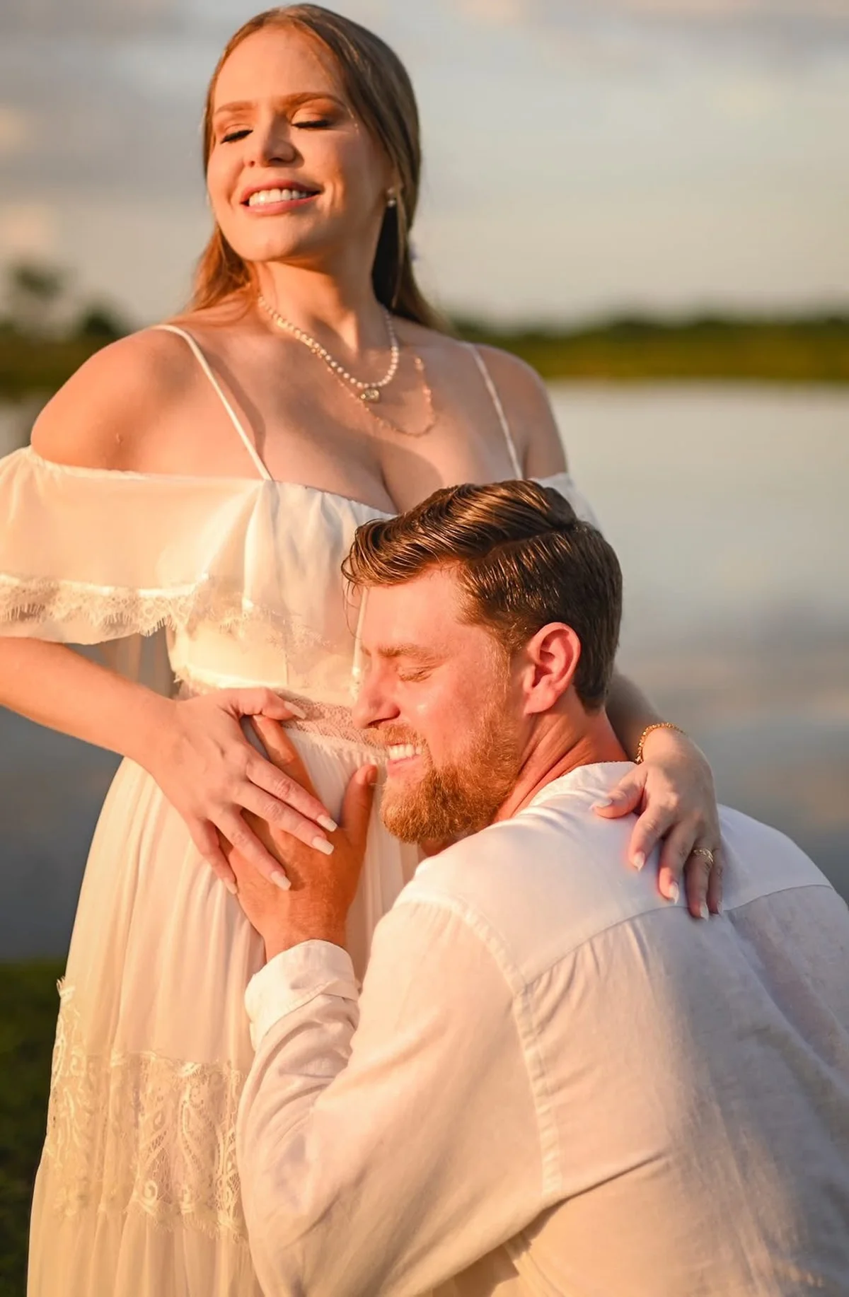 Paulinha Leite e o marido, Dakota Ballard, posam juntos e sorridentes