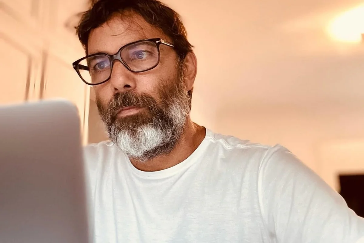 Marcelo Faria posa nas redes sociais trabalhando em um computador