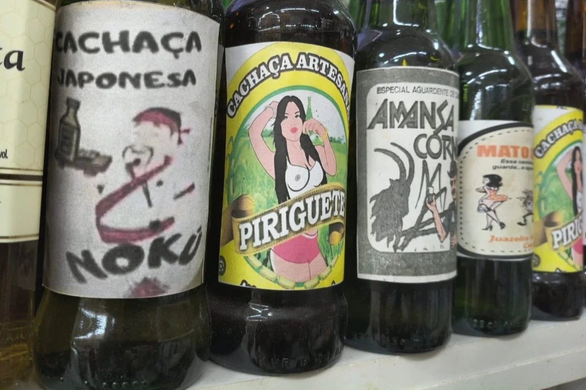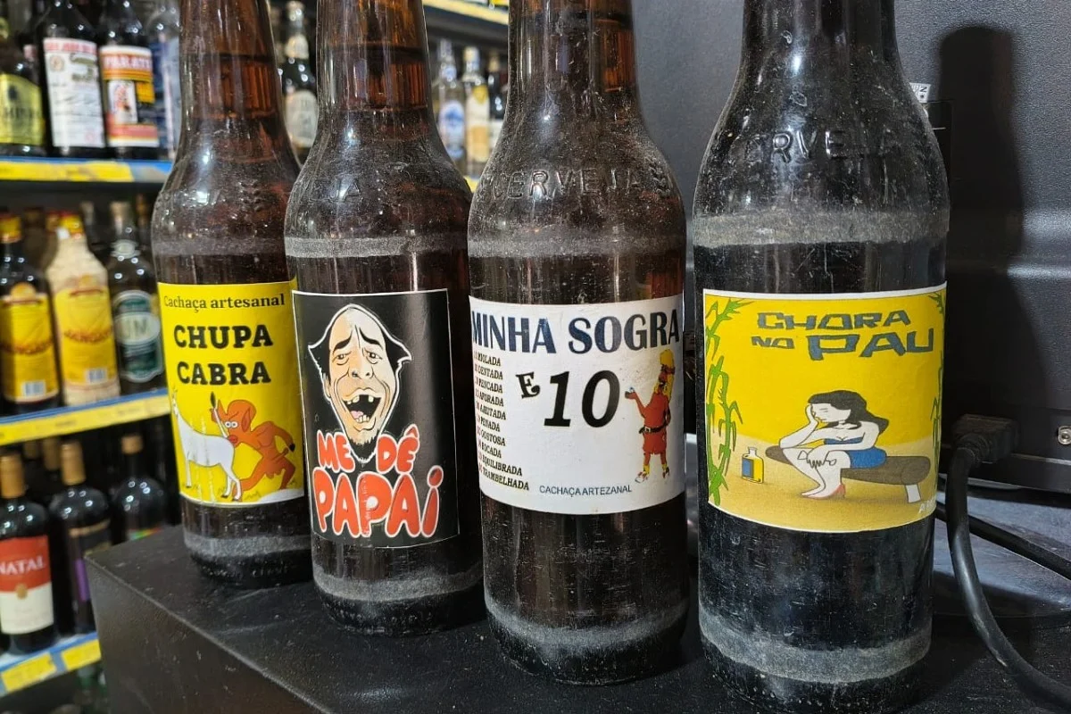 Um exemplo são as “pingas de piada”, que têm os rótulos cheios de trocadilhos de cunho sexual e parte deles com conteúdo politicamente incorreto, para “presentear os amigos”. A criatividade não tem limite e muitas caberiam perfeitamente em músicas do passado feitas por Genival Lacerda. “Amansa Corno”, “Nabundinha”, “Pau do Índio”, “Xixi de Virgem” e a “japonesa” “Noku” são alguns exemplos.