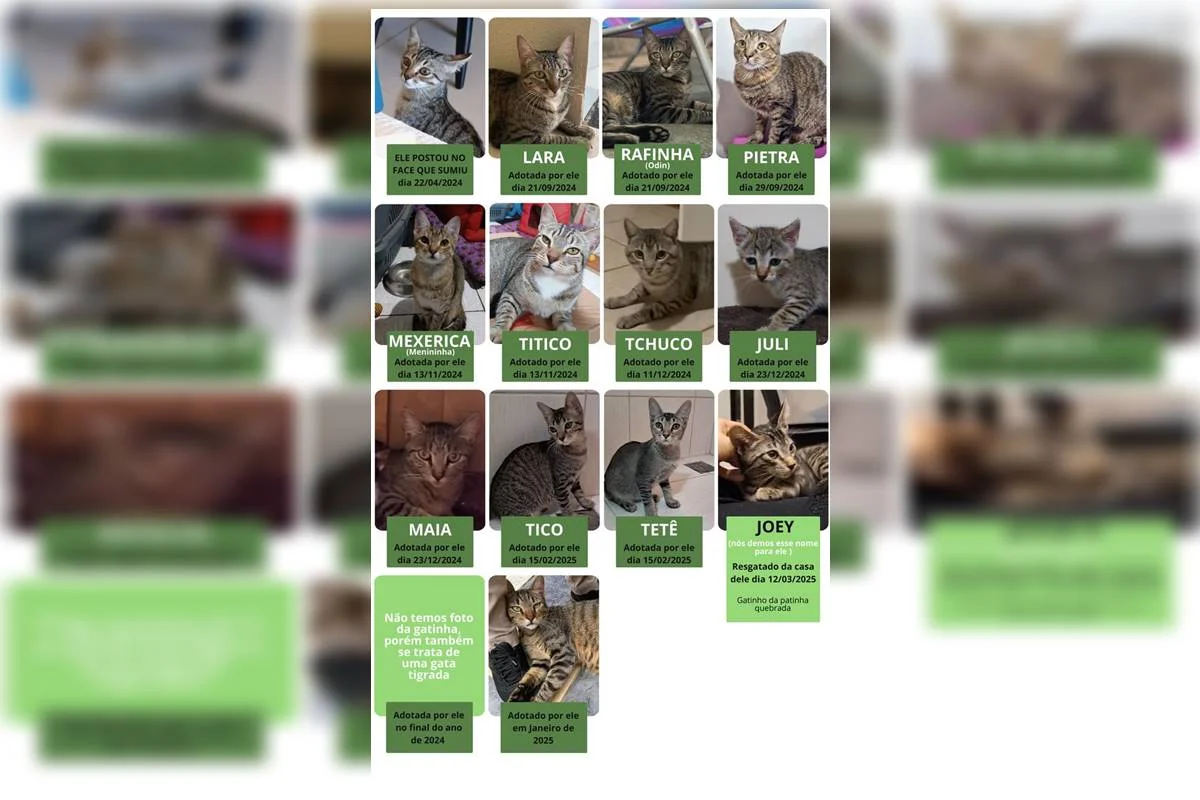 - Pablo procurava protetores de animais pedindo para adotar os bichinhos. Um mês após uma adoção, ele inventava histórias para as doadoras afirmando que os bichos haviam sumido e pedia outro animal. Assim, ele conseguiu adotar pelo menos 20 felinos entre setembro de 2024 e março de 2025.