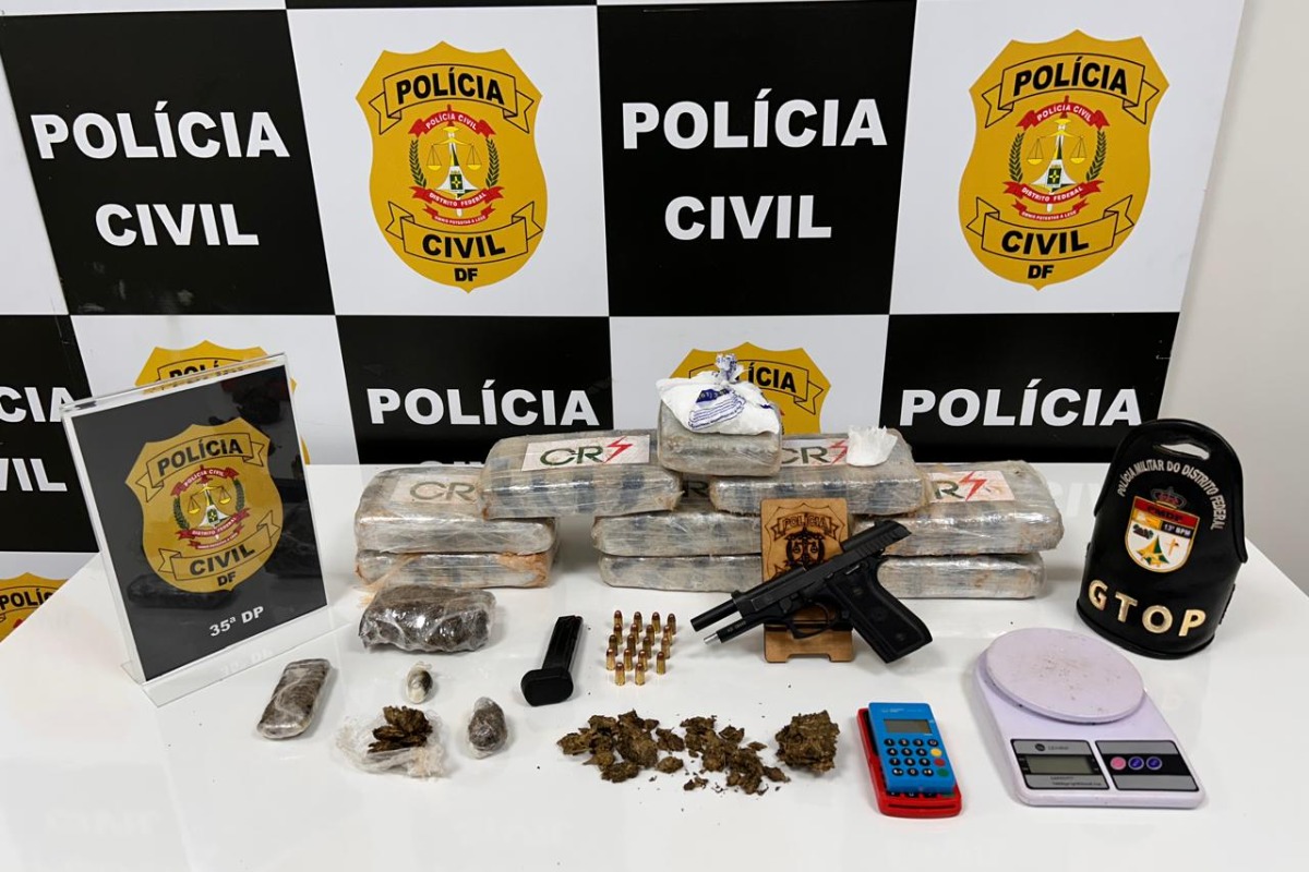 Após os procedimentos habituais o criminoso foi encaminhado à carceragem da PCDF. Ele pode ser acusado de tráfico de drogas e porte de arma de fogo ilegal.