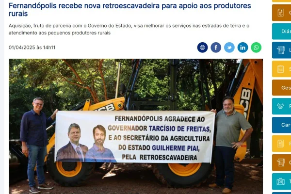 As entregas são acompanhadas de faixas de agradecimento a Piai e ao governador Tarcísio de Freitas (Republicanos) pelos equipamentos, cujas entregas fazem parte do programa Patrulha Rural, que neste ano distribuiu R$ 86 milhões em equipamentos para cerca de 260 cidades de São Paulo.