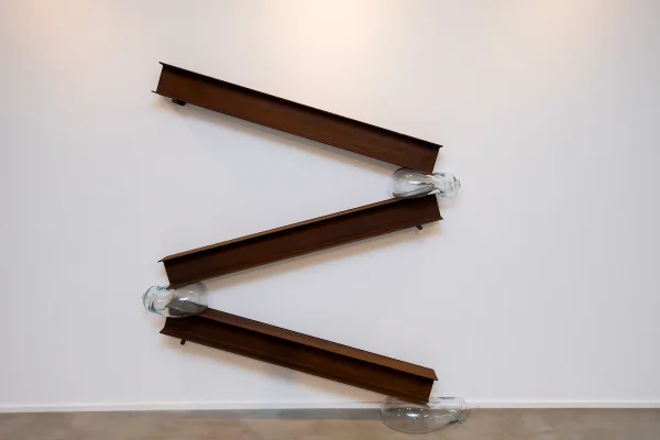 A mostra ocupa as salas internas e o espaço externo da galeria, criando uma narrativa visual que conecta os visitantes à energia e à textura dos materiais, explorando o espaço aéreo, as paredes e o chão com peças suspensas e estruturadas de forma a desafiar a gravidade.