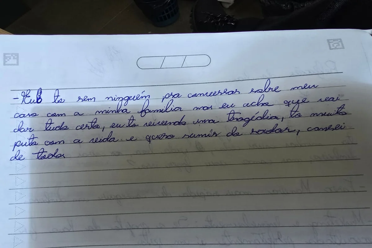 No diário, o rapaz relatava o afastamento da família e o incômodo com a falta de diálogo em casa: “As pessoas me veem como se eu fosse bandido”, escreveu — uma ironia cruel diante das circunstâncias em que acabou sendo detido.