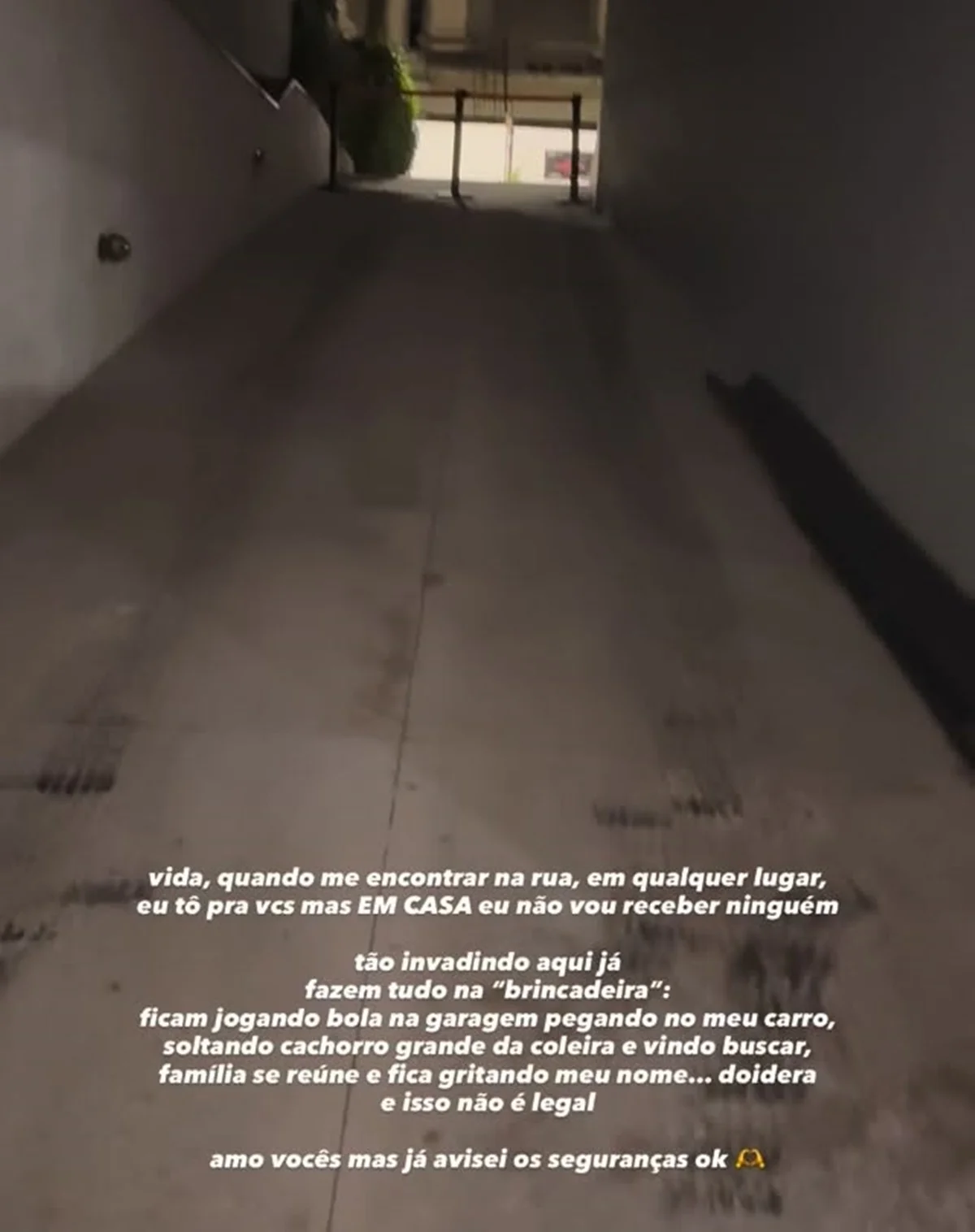 Na legenda do vídeo, ele desabafou: “Vida [como chama seus fãs], quando você me encontrar na rua, ou em qualquer lugar, eu tô pra vocês. Mas em casa eu não vou receber ninguém. Tão invadindo aqui já”, reclamou.