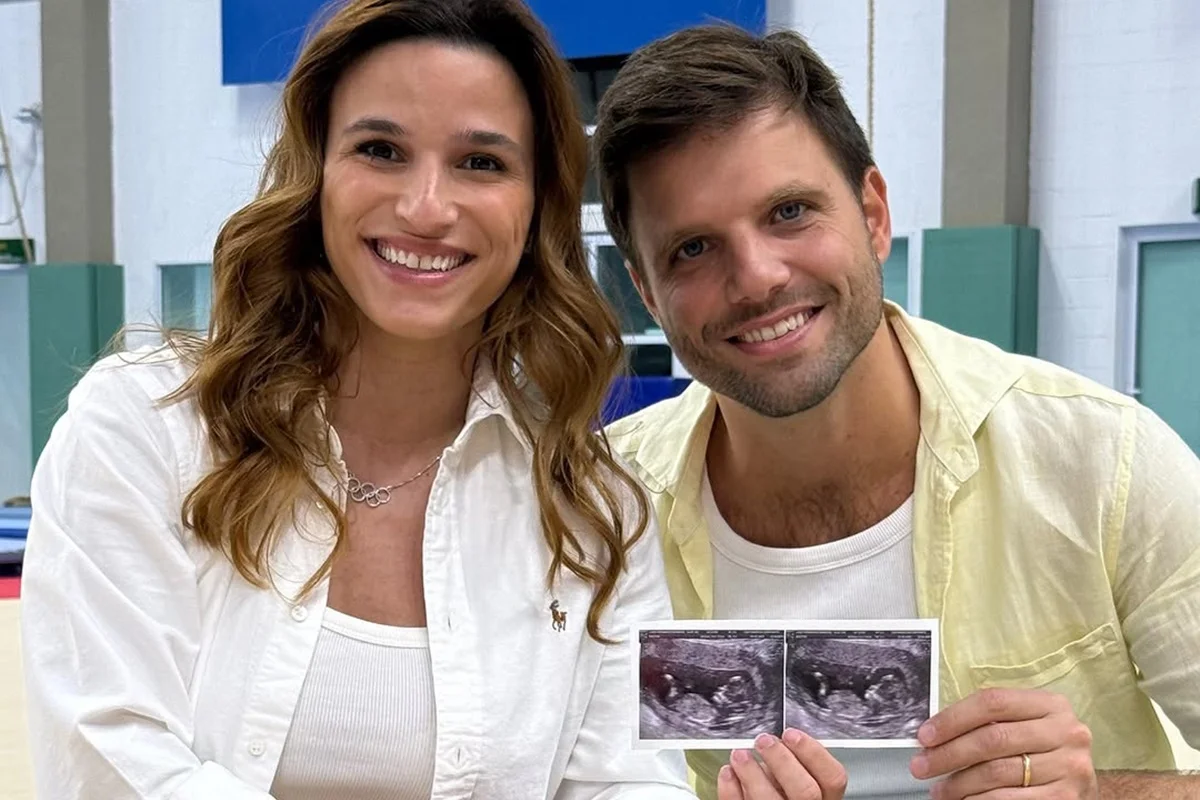 Jade Barbosa e o marido, Leandro Fontanesi, posam com a ultra da primeira filha