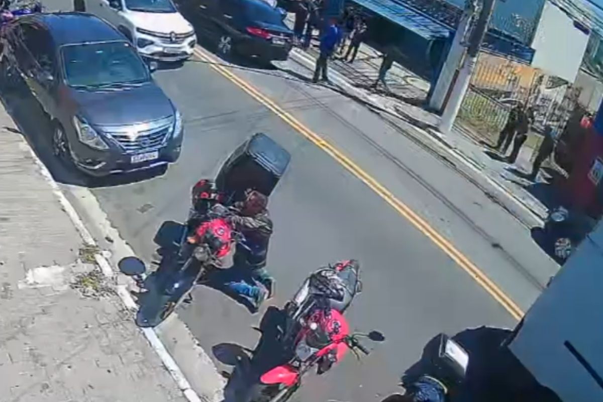 Logo após ter escapado de um assalto que foi interceptado por um policial militar de folga na Freguesia do Ó, zona norte de São Paulo, na quinta-feira (23/10), a vítima andou em direção à sua motocicleta, ajoelhou e rezou.