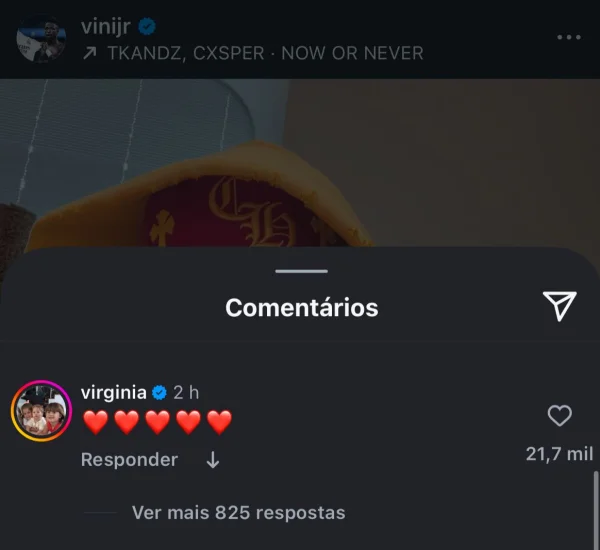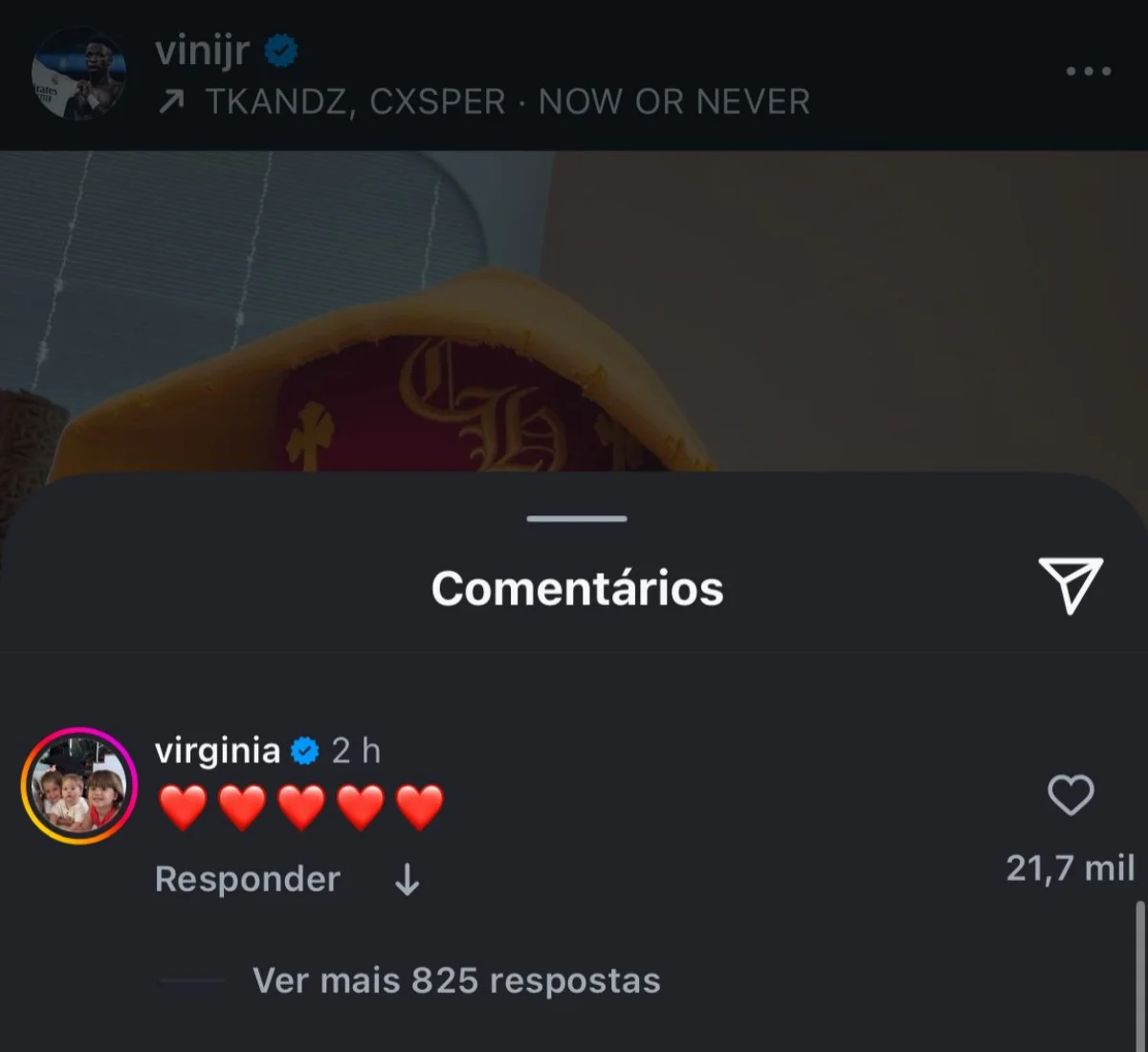 Virginia Fonseca deixou comentário em foto de Vini Jr.