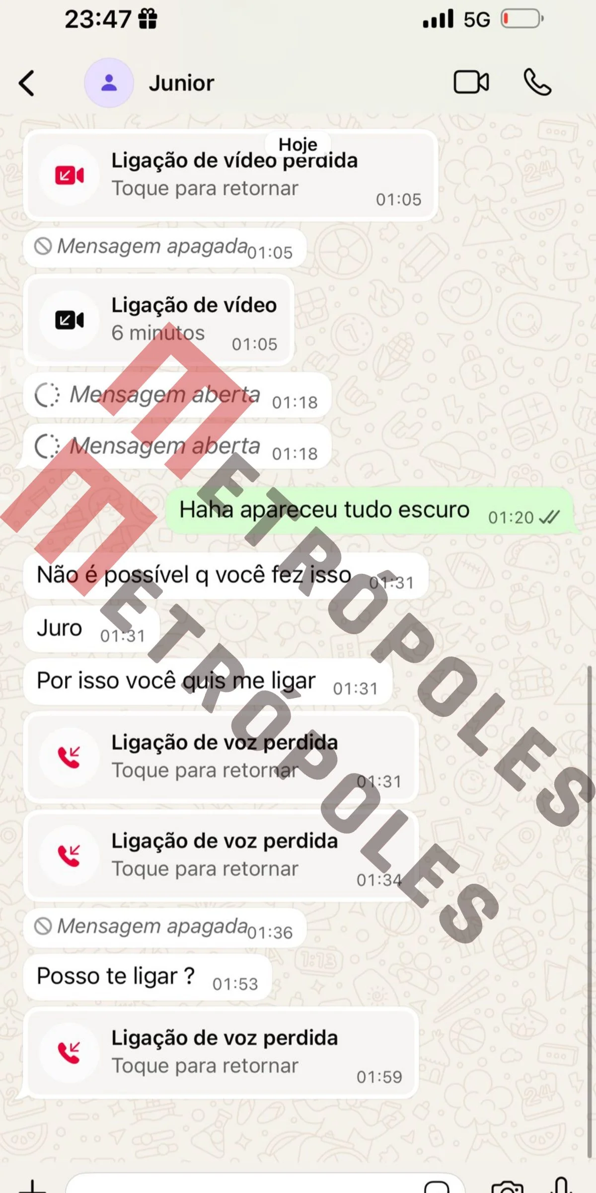 Na troca de mensagens à qual a coluna teve acesso, é possível ver que Vini Jr. fez diversas ligações para a modelo e deixou um recado em tom de incredulidade.
