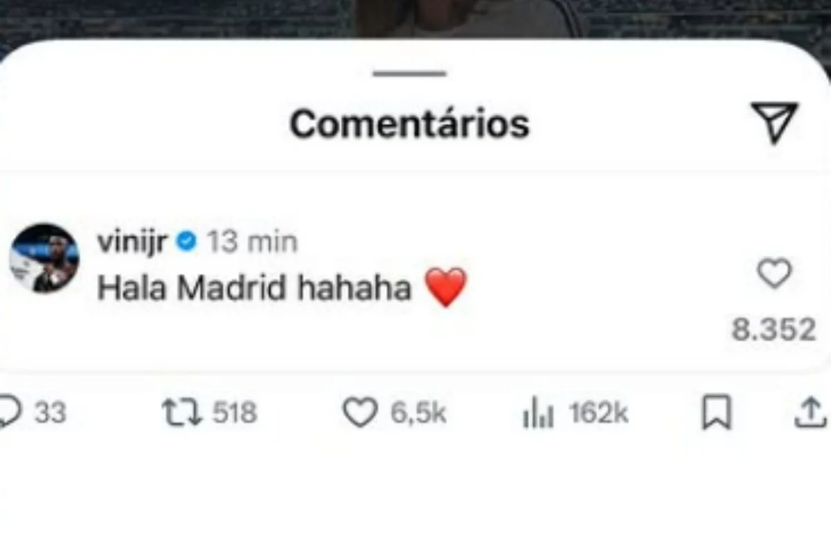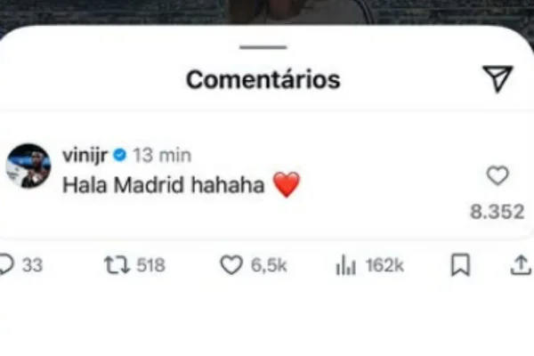 Após o término da partida, Vini Jr. comentou a homenagem nas redes de Virginia: “Hala Madrid hahaha”, escreveu, adicionando um emoji de coração ao comentário.