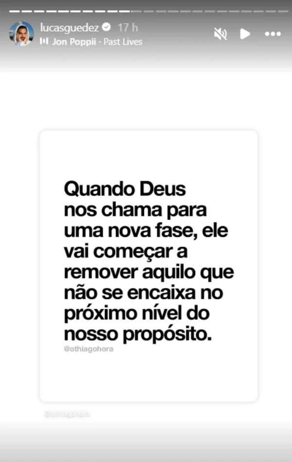 Mais cedo, Lucas Guedez já havia chamado atenção nas redes ao compartilhar uma reflexão misteriosa.