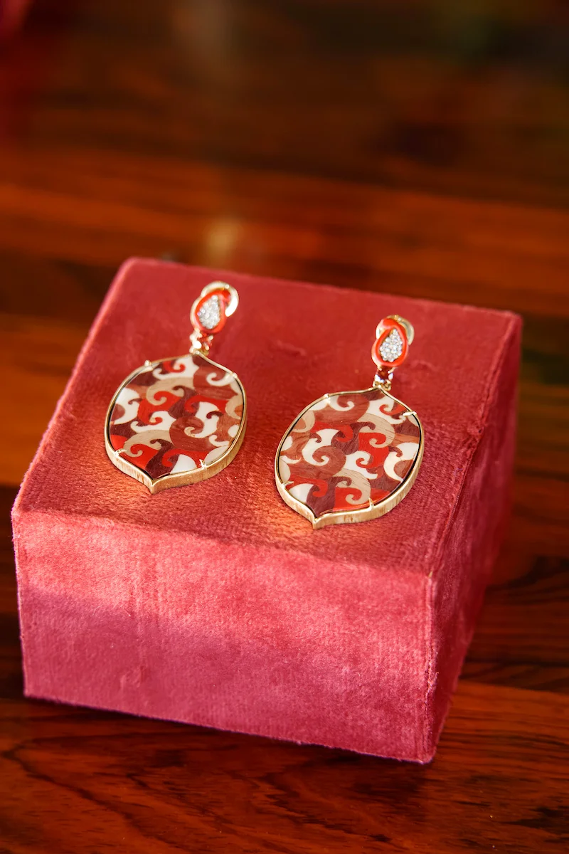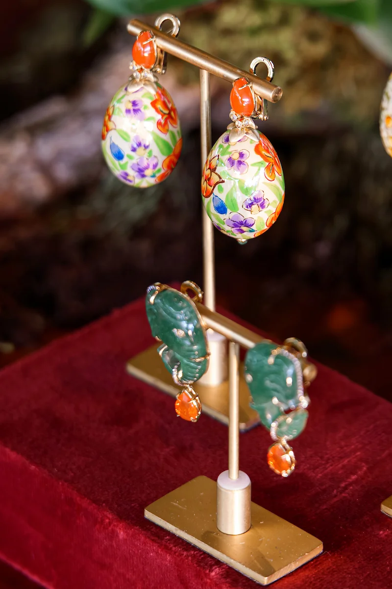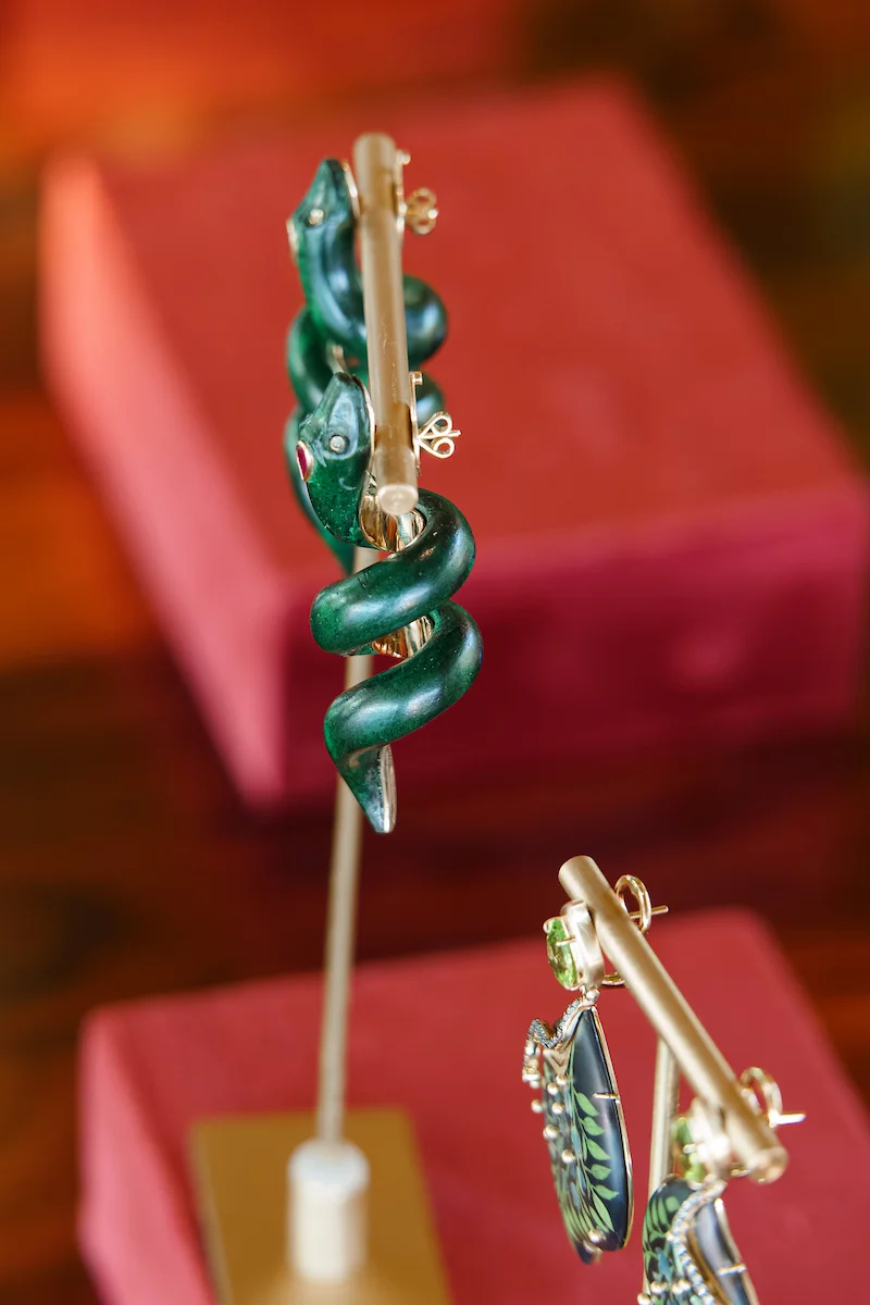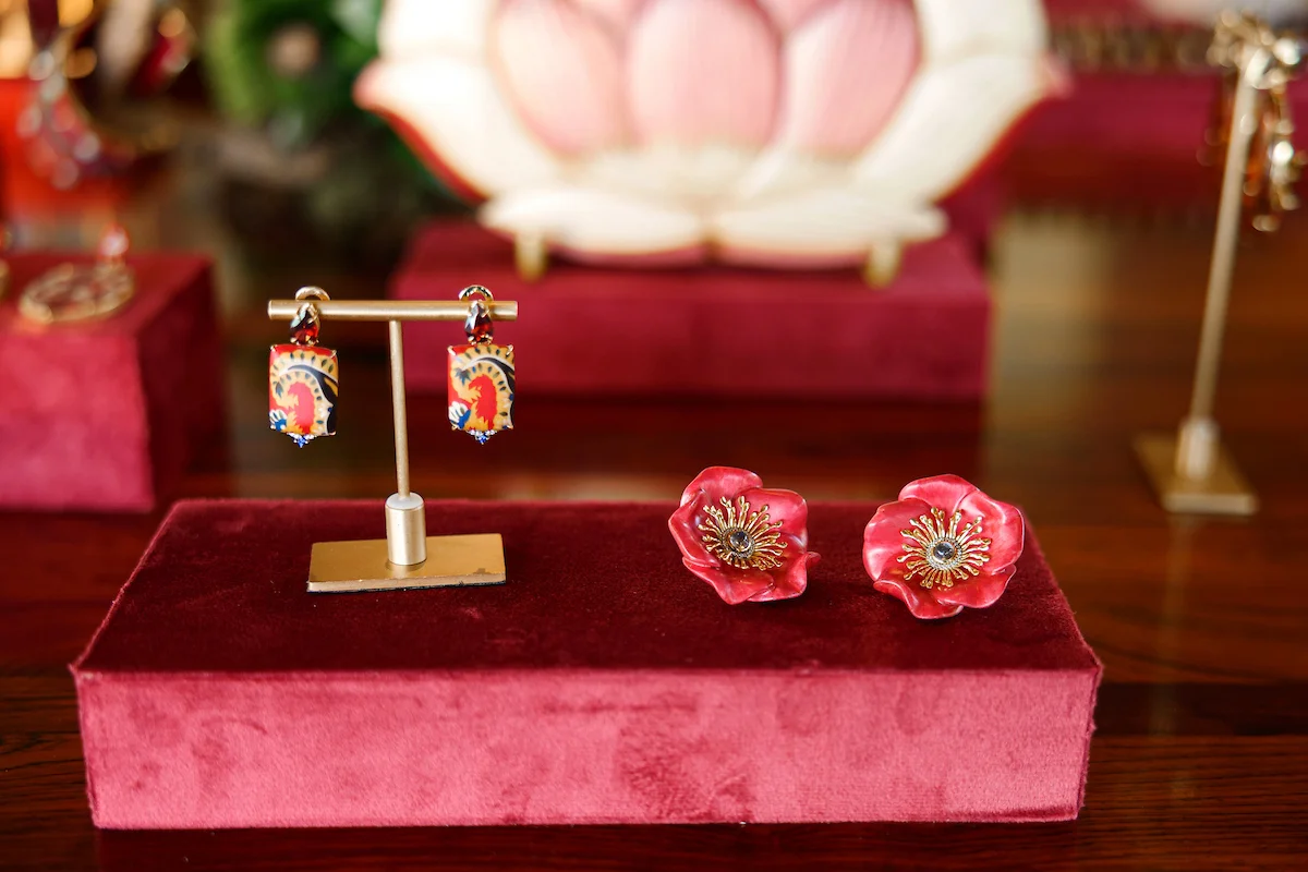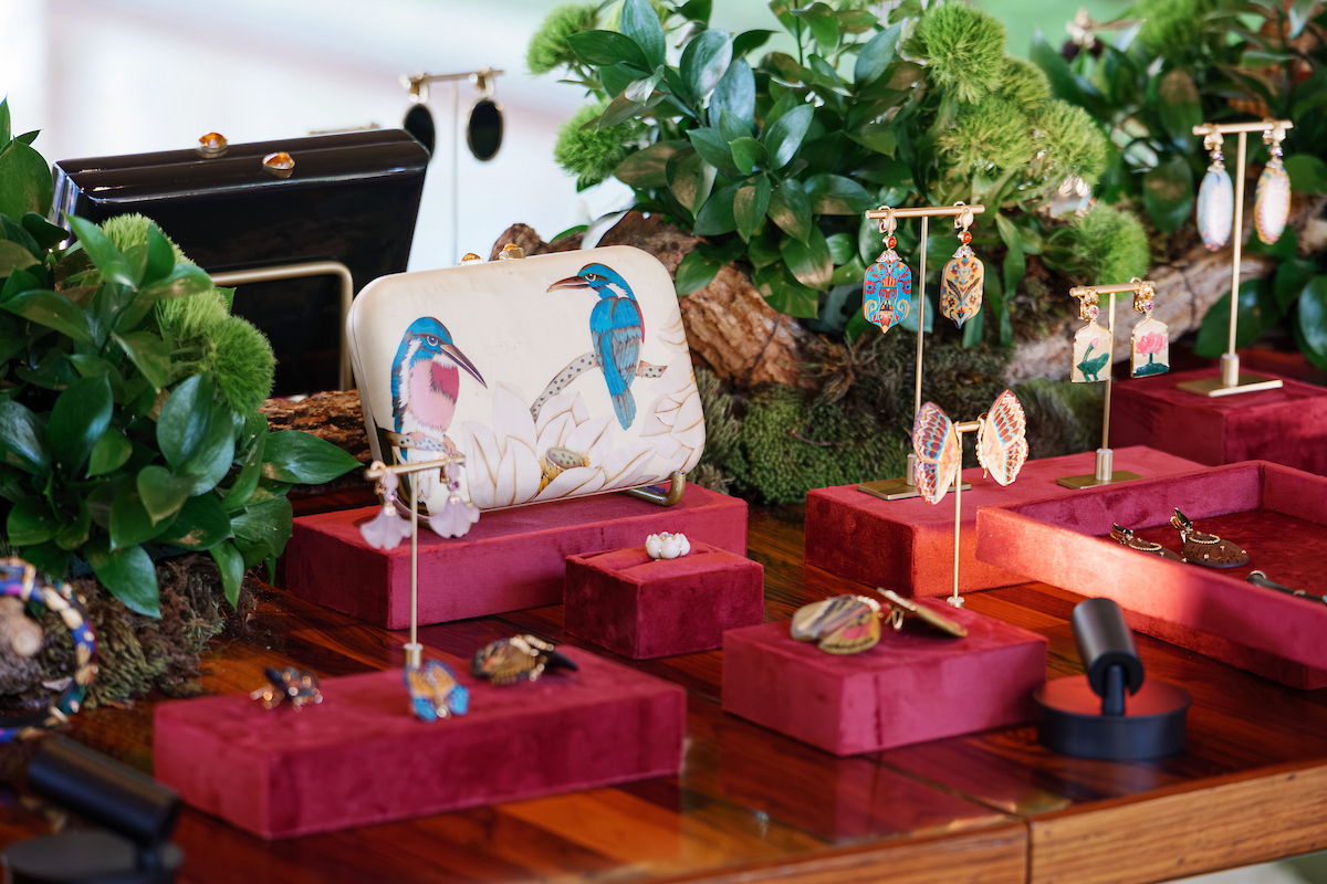 A coleção Kashmir combina tradição e inovação. As joias exploram técnicas como papel machê, machetaria e o uso de materiais nobres e sustentáveis, resultando em brincos, colares, anéis e acessórios únicos, que refletem tanto o olhar artístico da designer quanto a herança cultural dos lugares visitados.