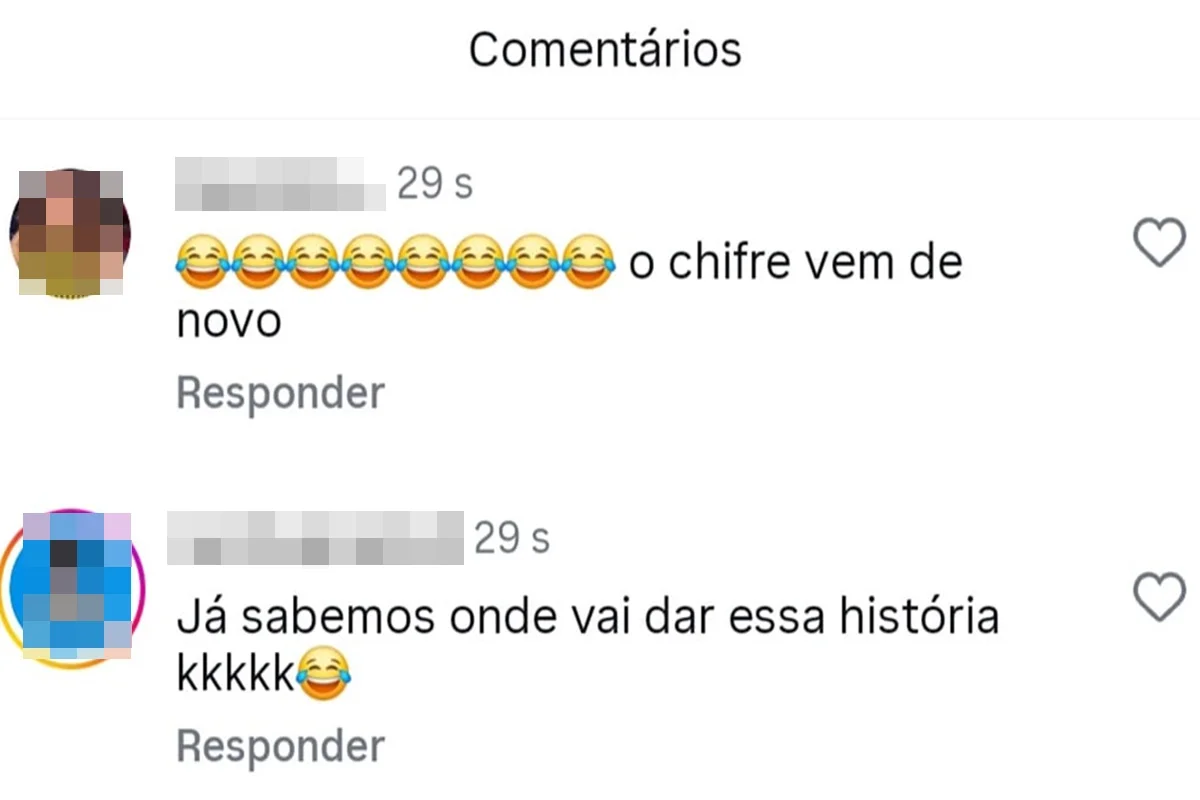 Ainda teve que fez previsões: “O chifre vem de novo”, opinou uma. “Já sabemos onde vai dar essa história kkkkk”, garantiu outro. “Duvido se fosse pobre”, observou um terceiro.